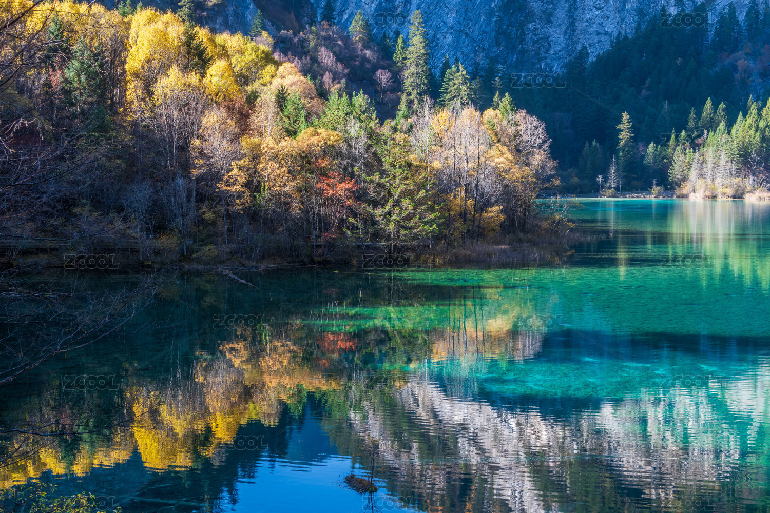 四川,九寨沟,五花海,秋景,彩林,自然,风光,秋天,植被,湖水