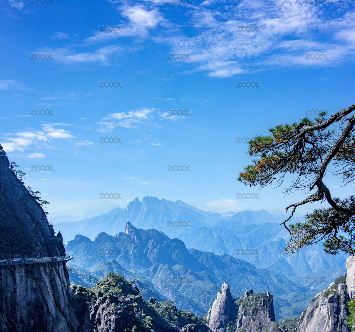 安徽省黄山市黄山风景区步行栈道谷建筑景观