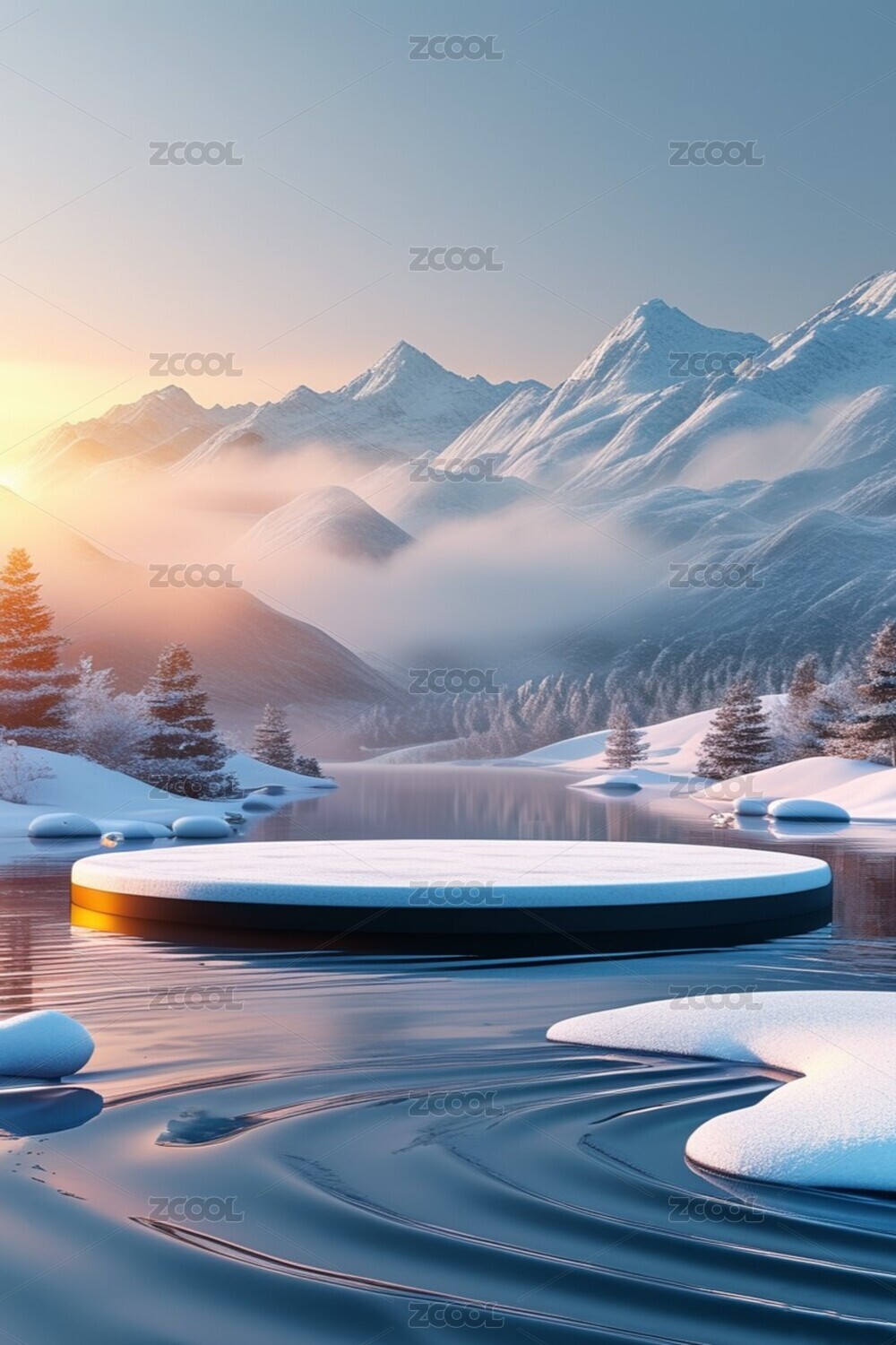 创意立体展台自然冰川雪山晚霞电商展示背景