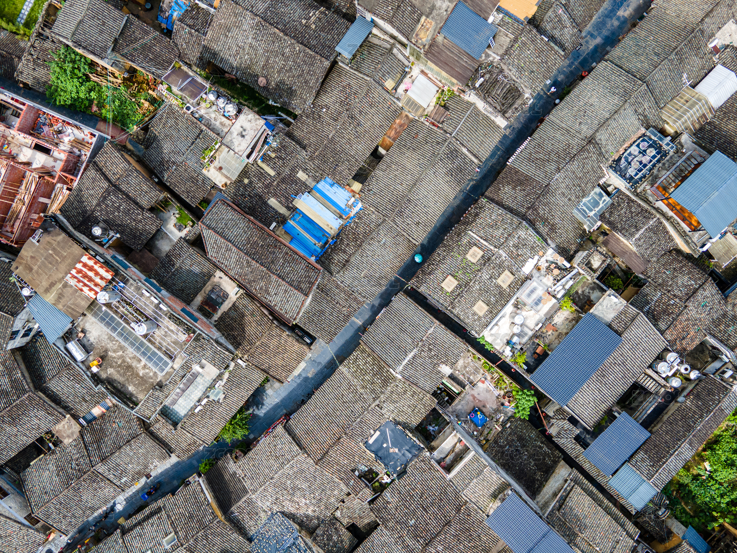 中国广西贺州黄姚古镇房屋建筑俯视航拍