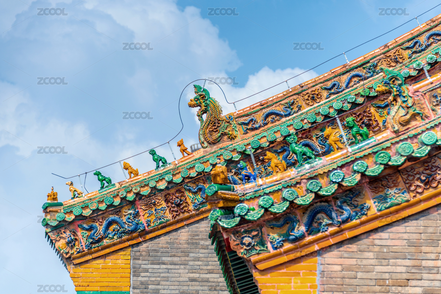 中国山西省临汾市洪洞县广胜寺古建筑彩色琉璃鸱吻