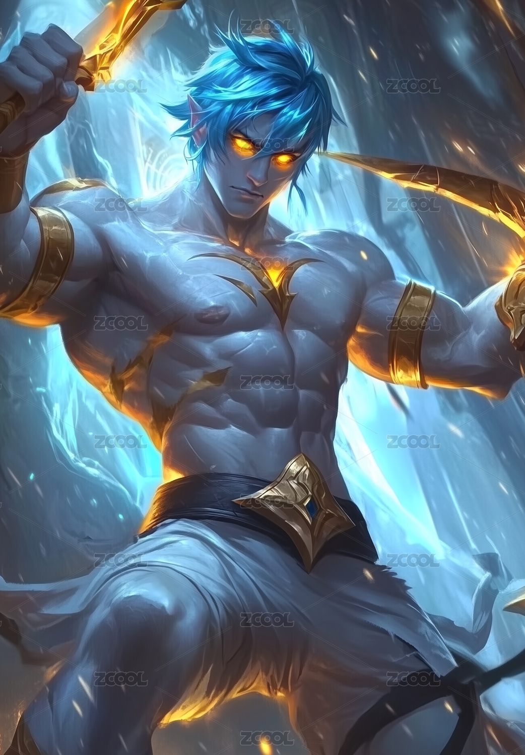 时尚有丝带飘带黑色肌肉男模特3D立体插画