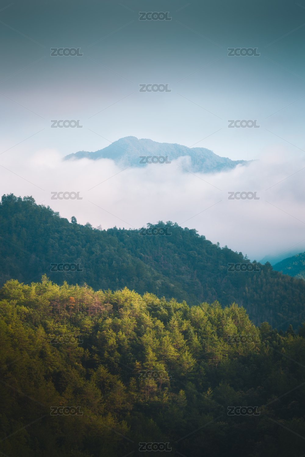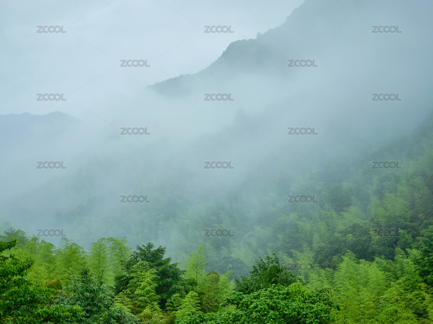 云雾缭绕的翠竹山峦