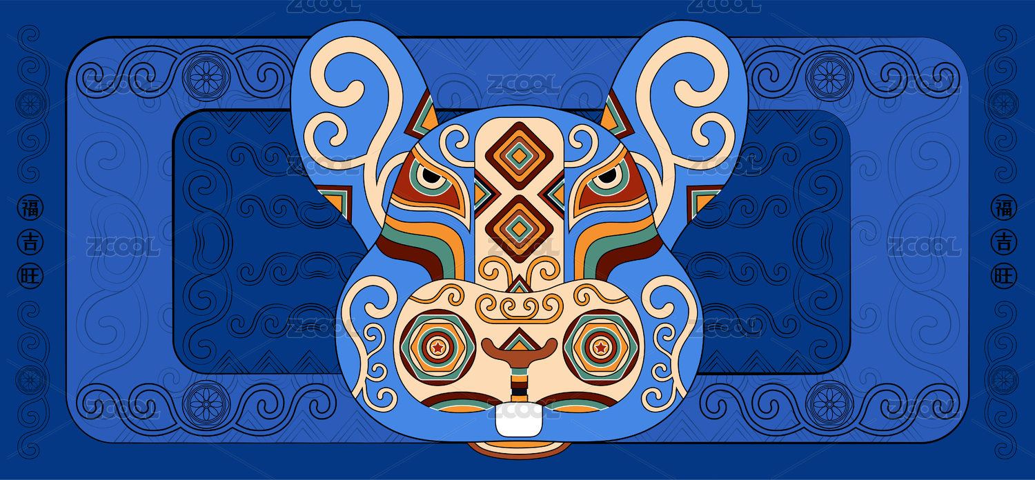 卯兔十二生肖国潮传统艺术装饰纹样卡通形象