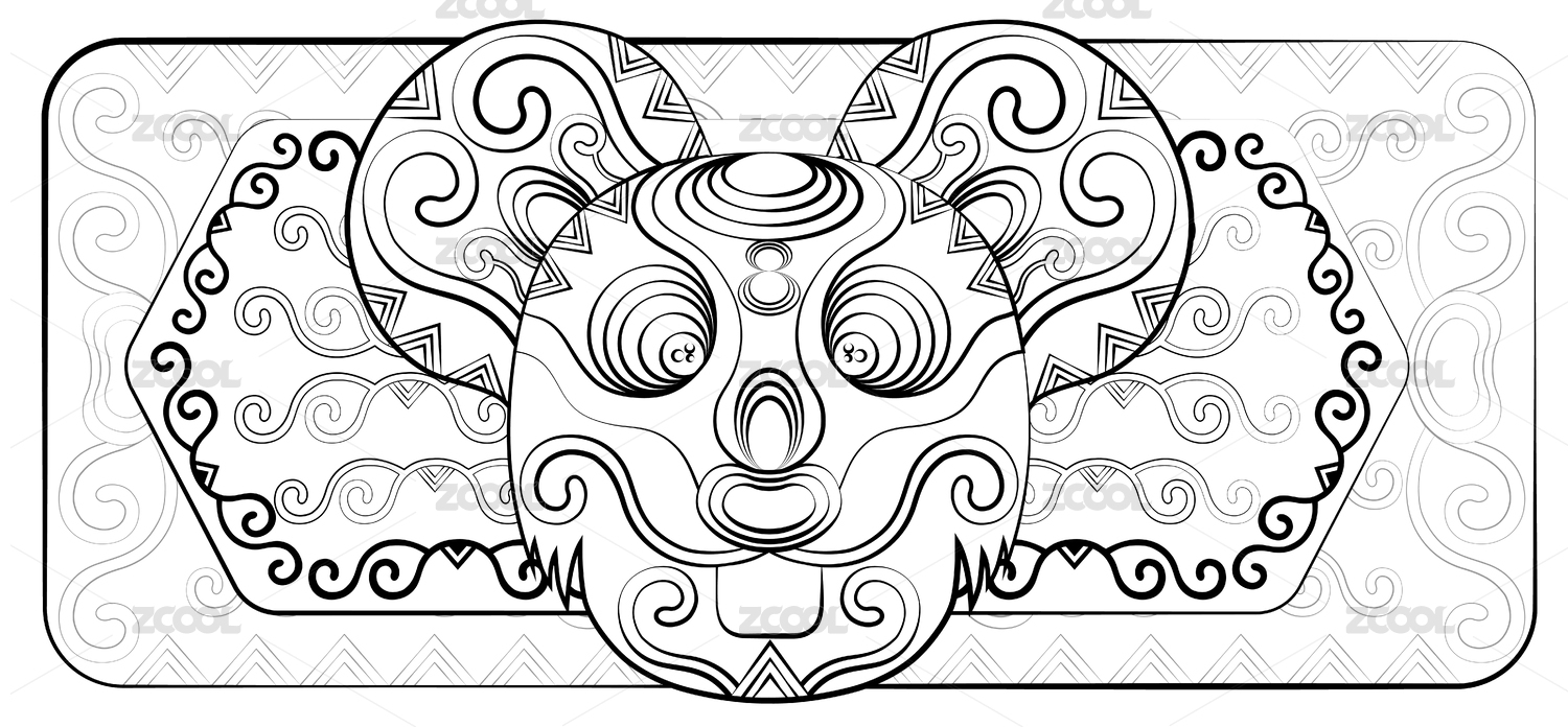 鼠十二生肖黑白简约中国风印花图案矢量插画