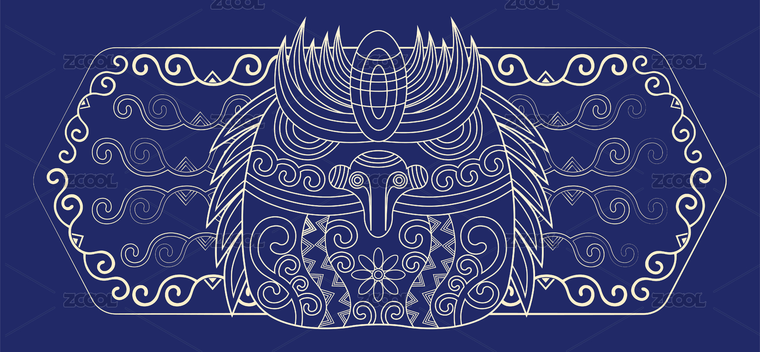 羊十二生肖传统中国风纹样金色线描矢量插画