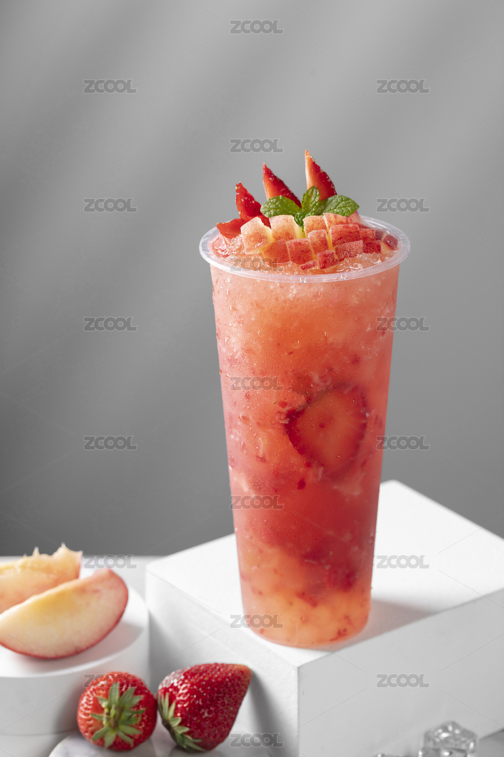 杯子里的冷饮饮料饮品草莓果汁饮品