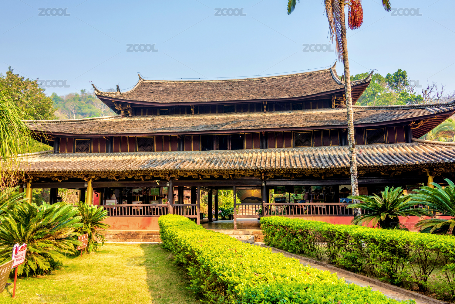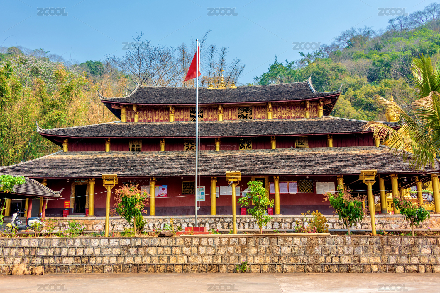 普洱娜允古镇的孟连总佛寺的热带风情花园