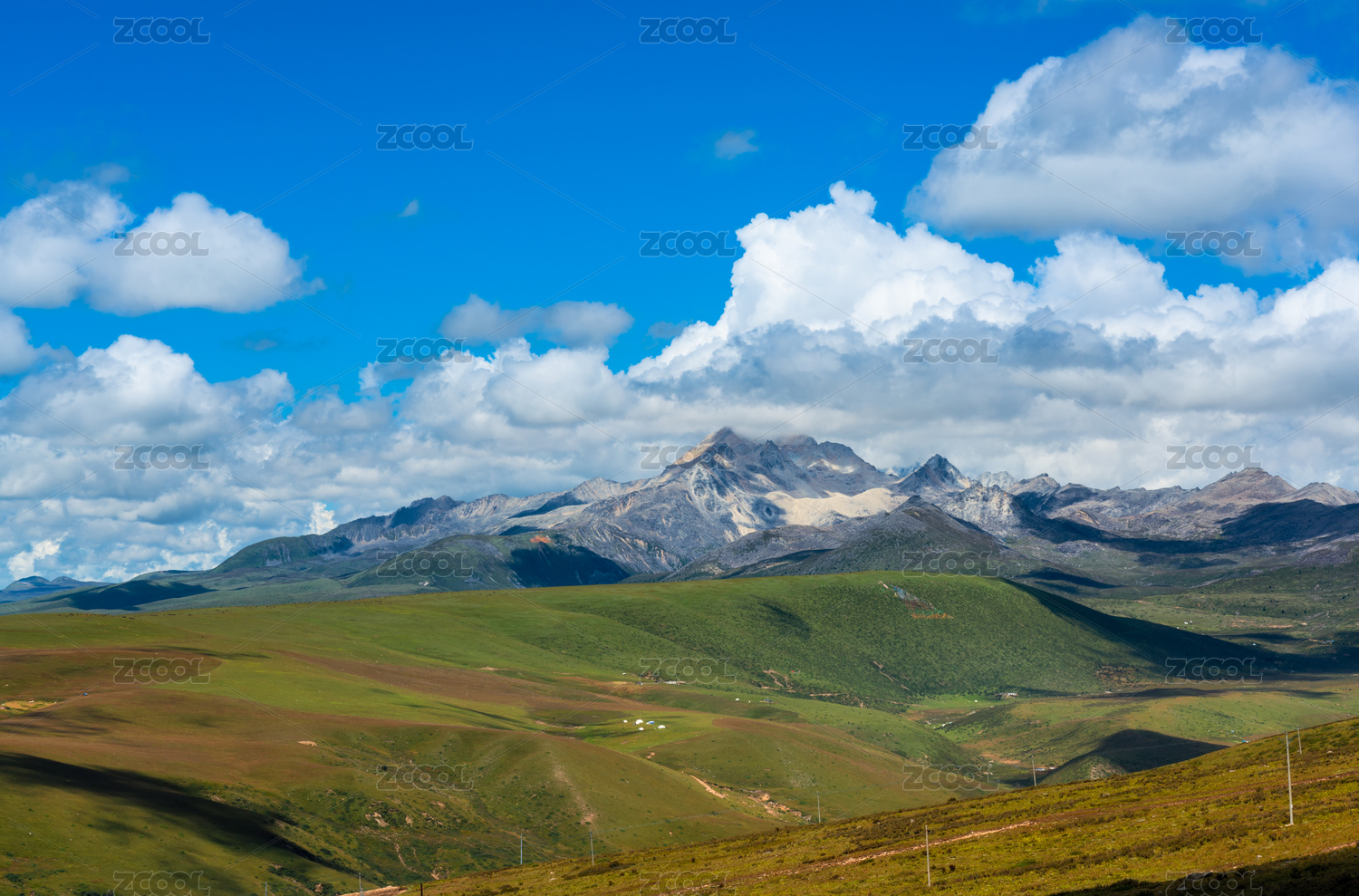 四川西部甘孜新都桥镇鱼子西景区远望雪山
