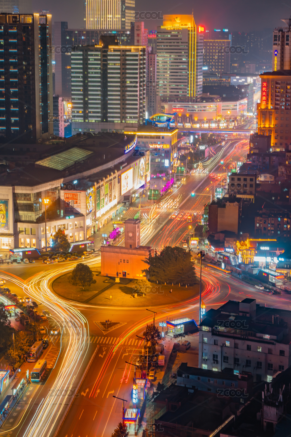 湖南长沙中山纪念亭夜景车轨拍摄
