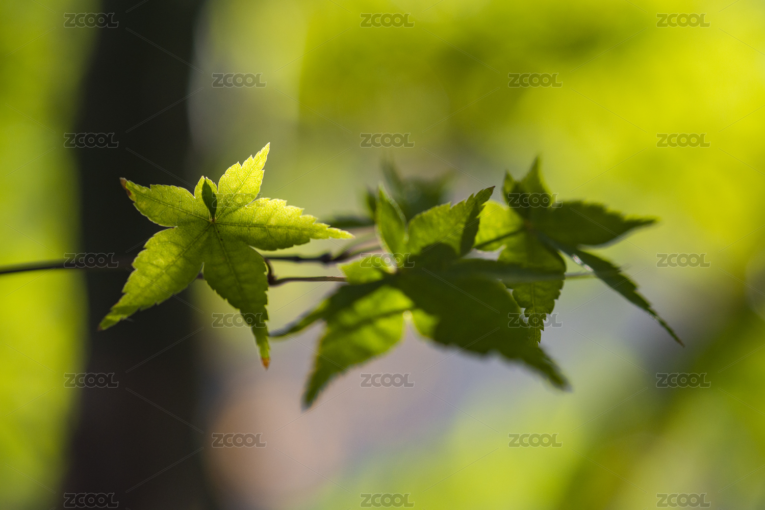 立夏时节嫩绿的枫树枫叶下雨天特写镜头