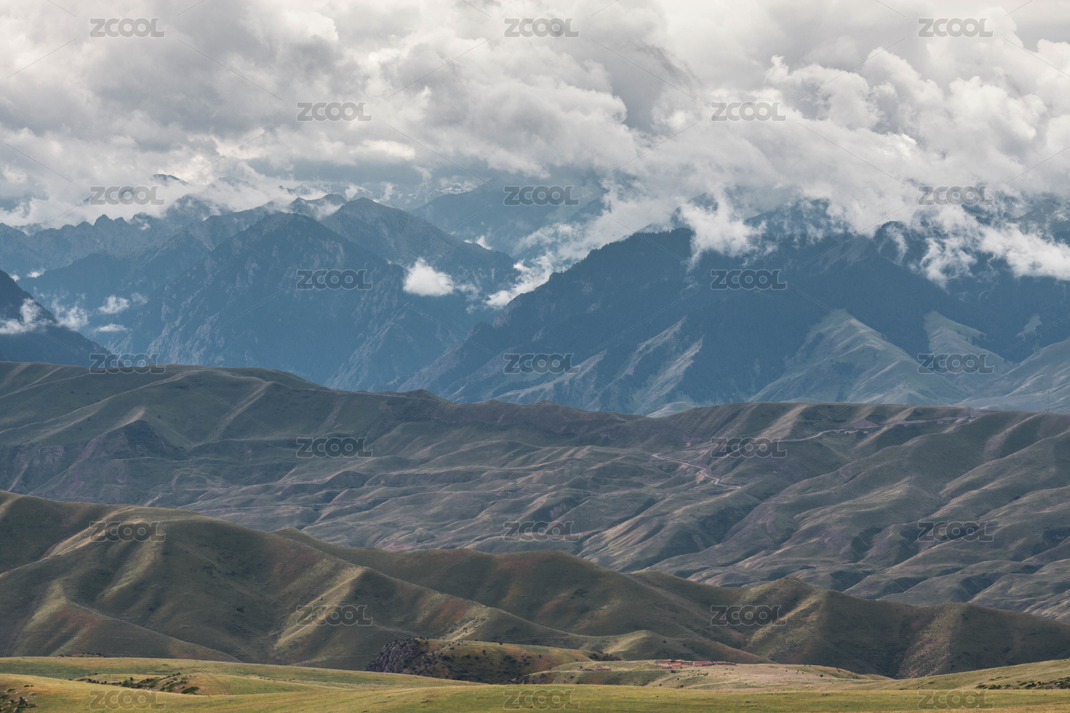 中国西北新疆特克斯县喀拉峻景区的山脉和峡谷