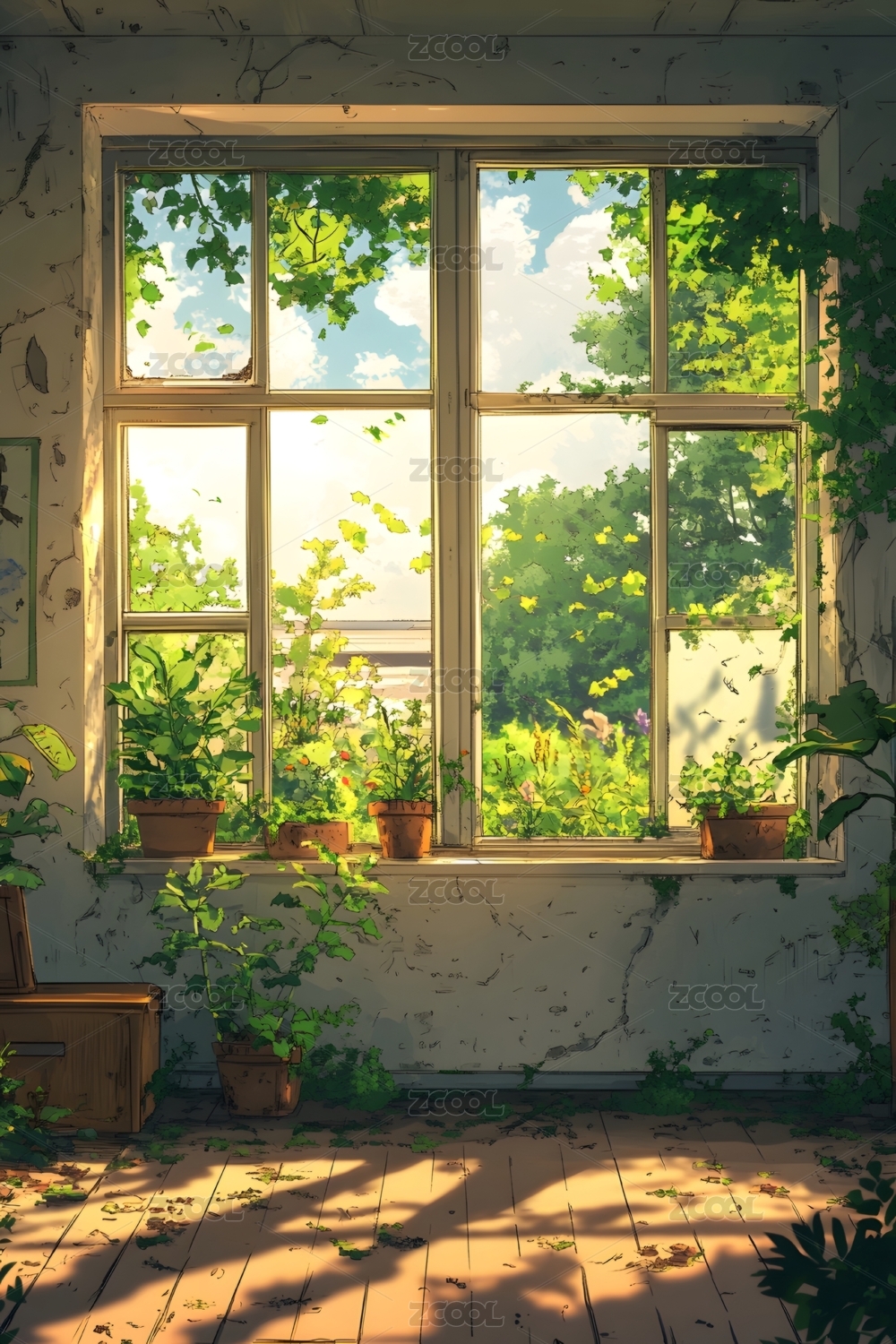 窗边花藤阳光洒落