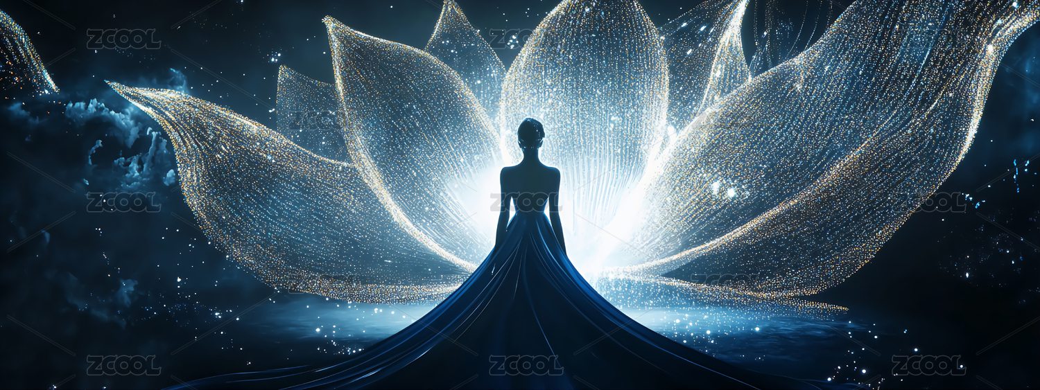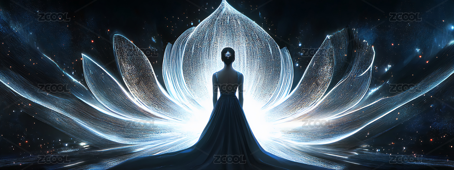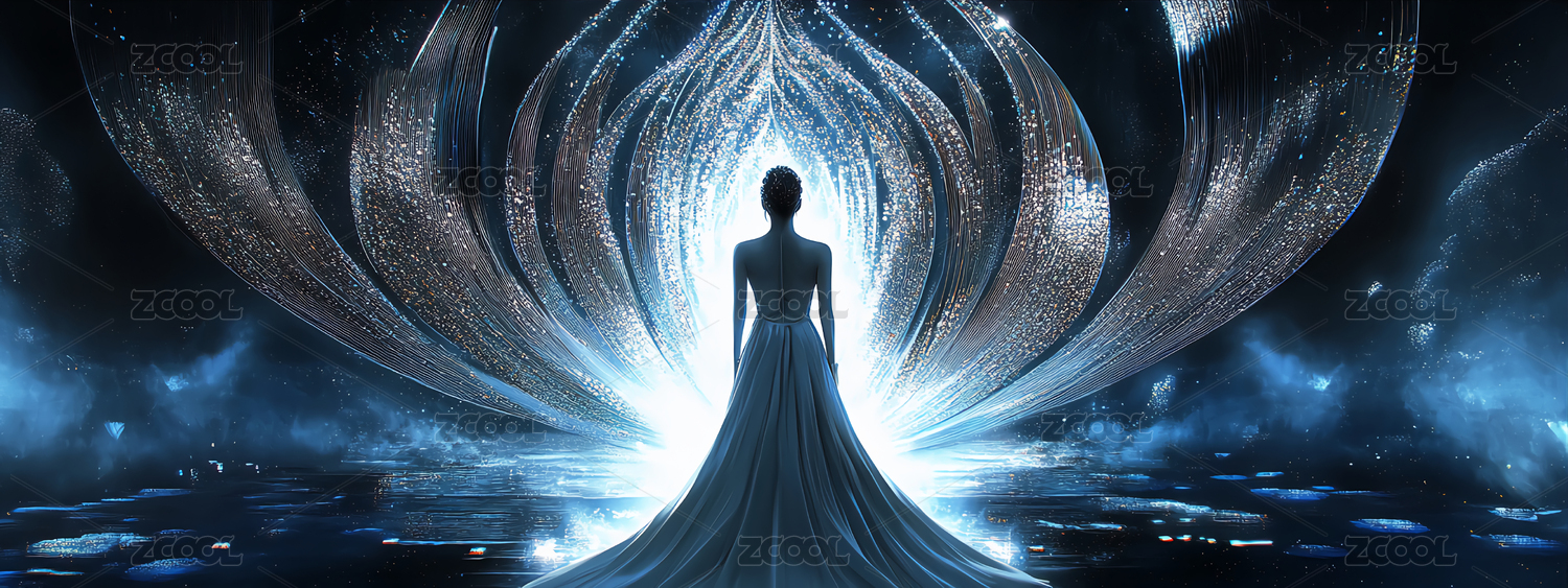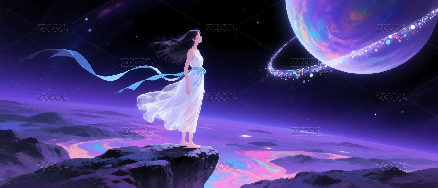 新娘, 礼服, 星际, 宇宙, 星星, 月亮, 山脉, 冰川, 光芒, 紫色