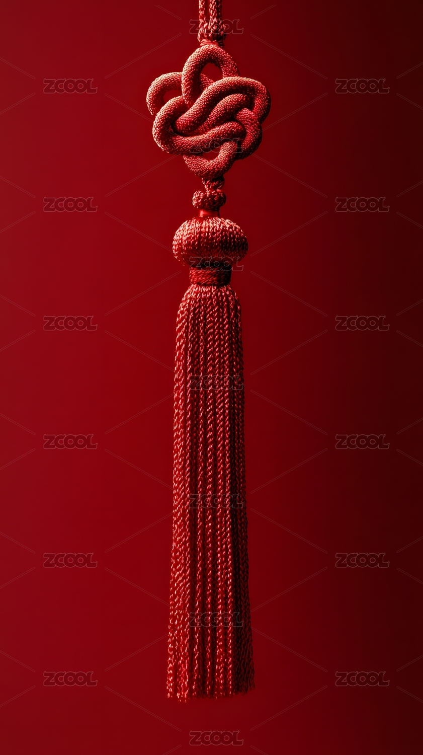在红色背景上的中国结。 中国结是一种节日装饰工艺品。