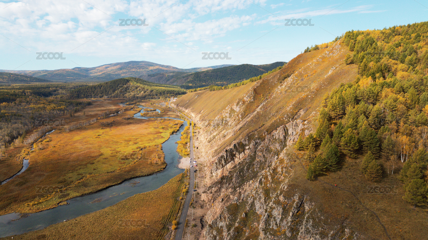 大兴安岭秋日山林公路航拍