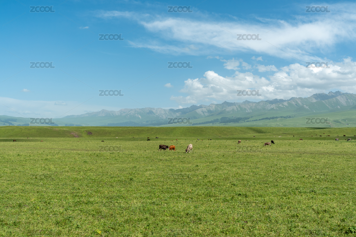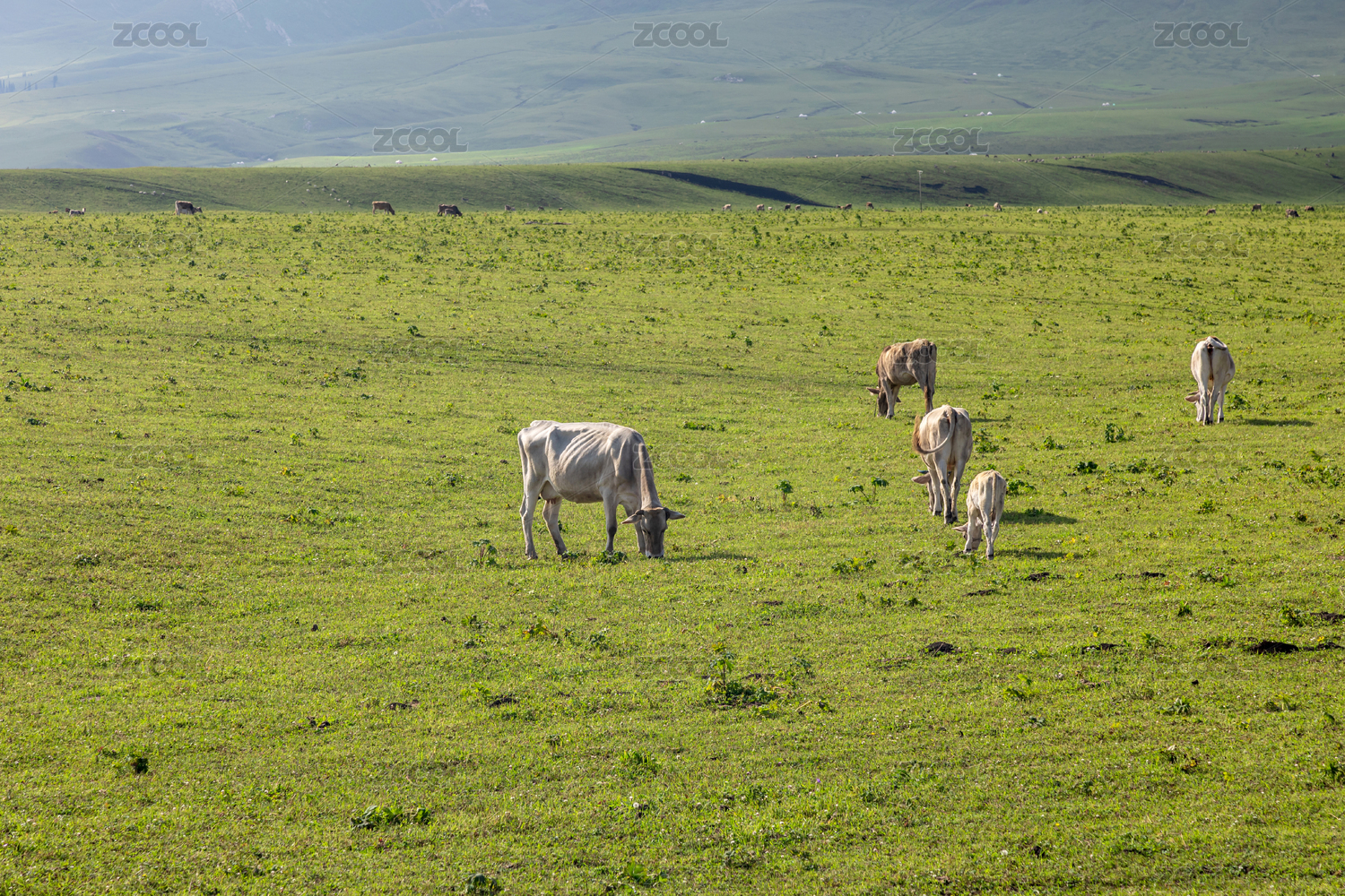 中国新疆伊犁那拉提草原高山草甸牛自然风光