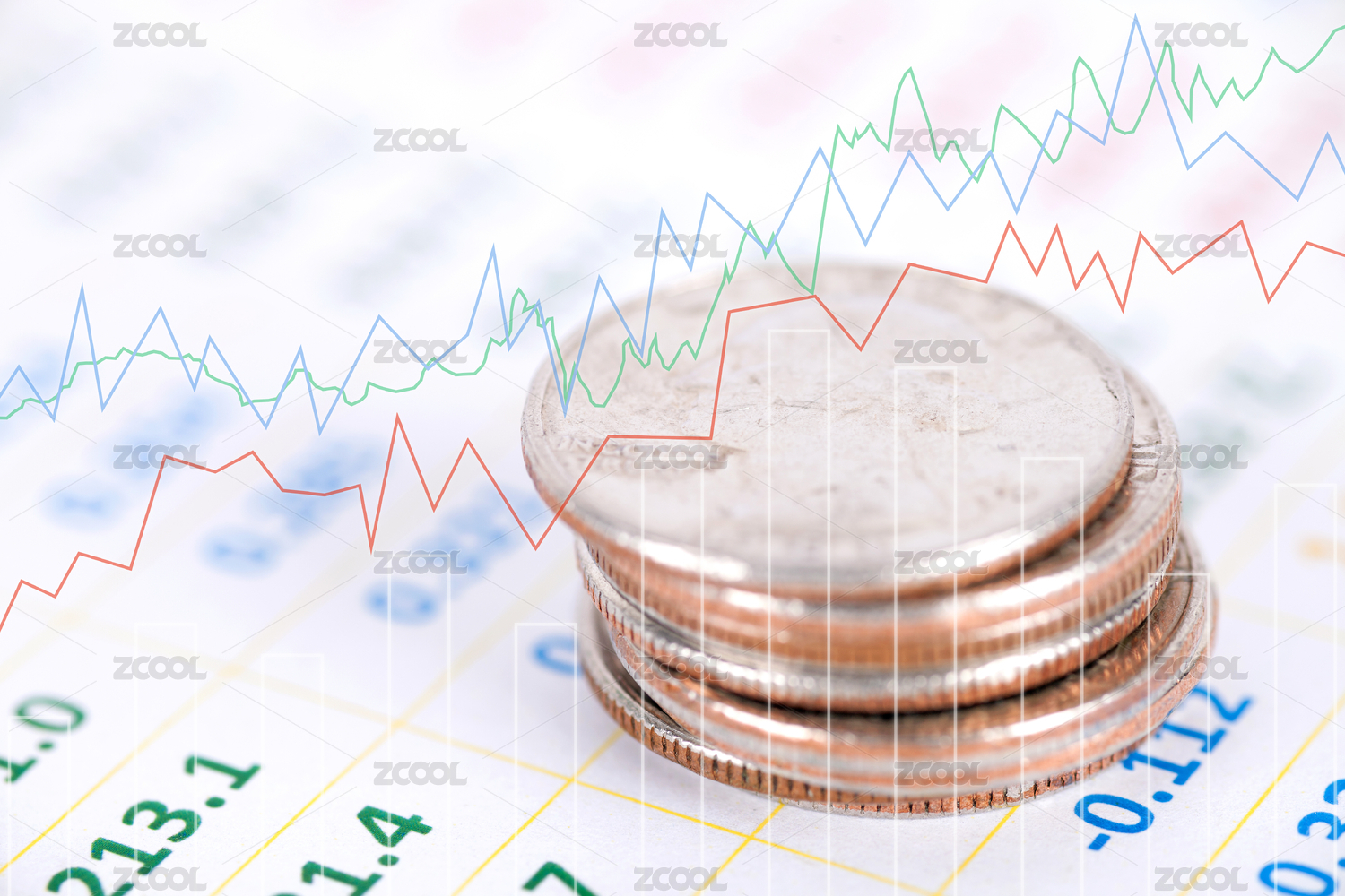 硬币堆砌堆叠投资理财金融图表报告大数据走势趋势