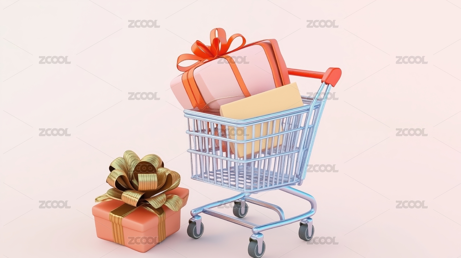 3D渲染的装着礼盒购物的购物车促销插图