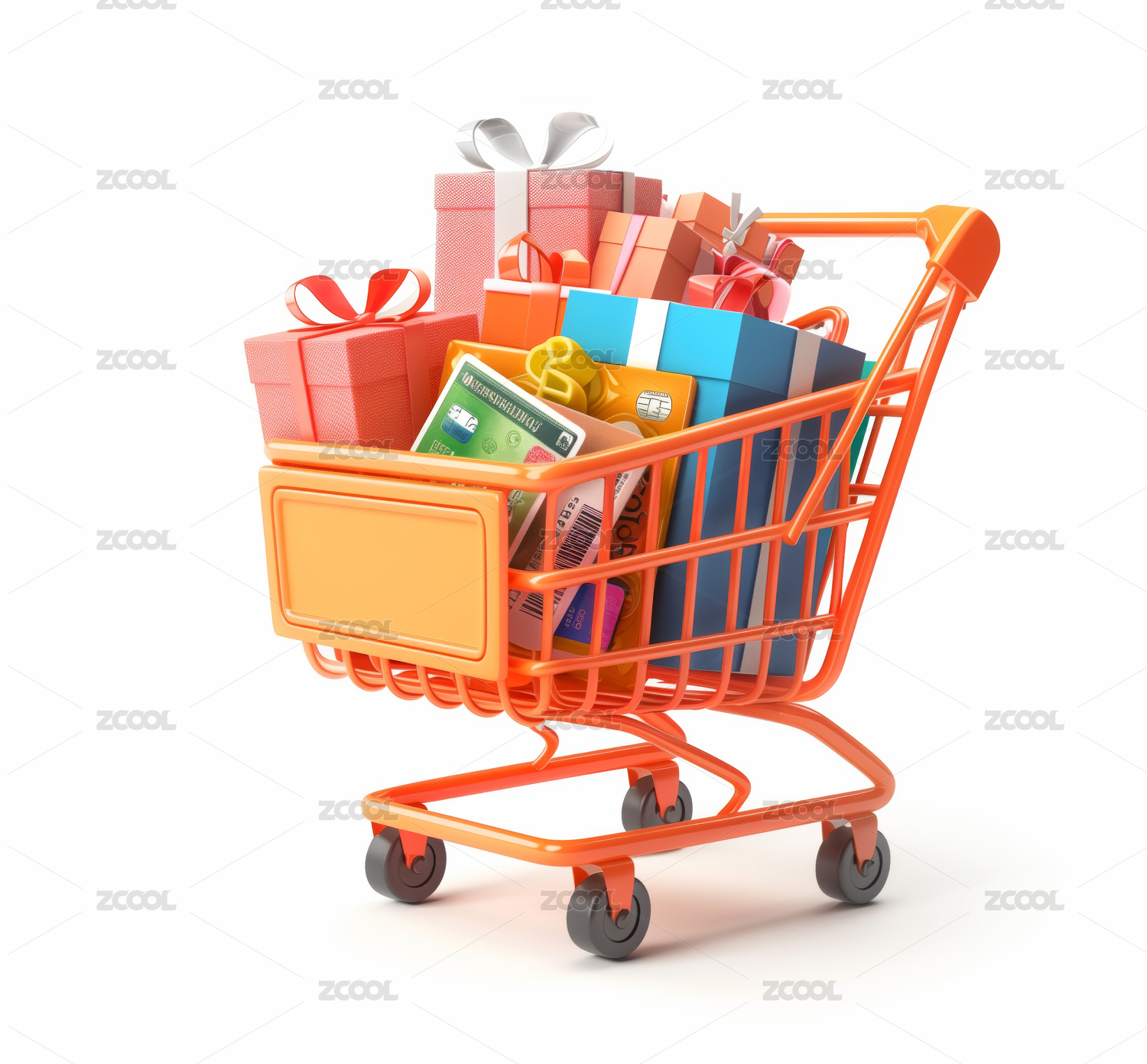 3D装满礼物商品的购物车