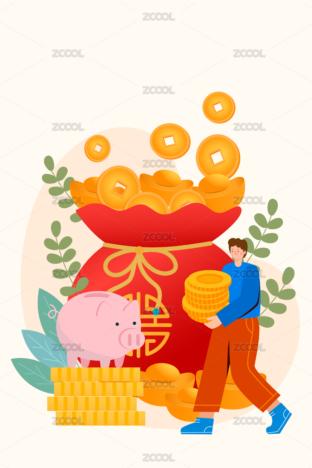 商业金融金币卡通插画