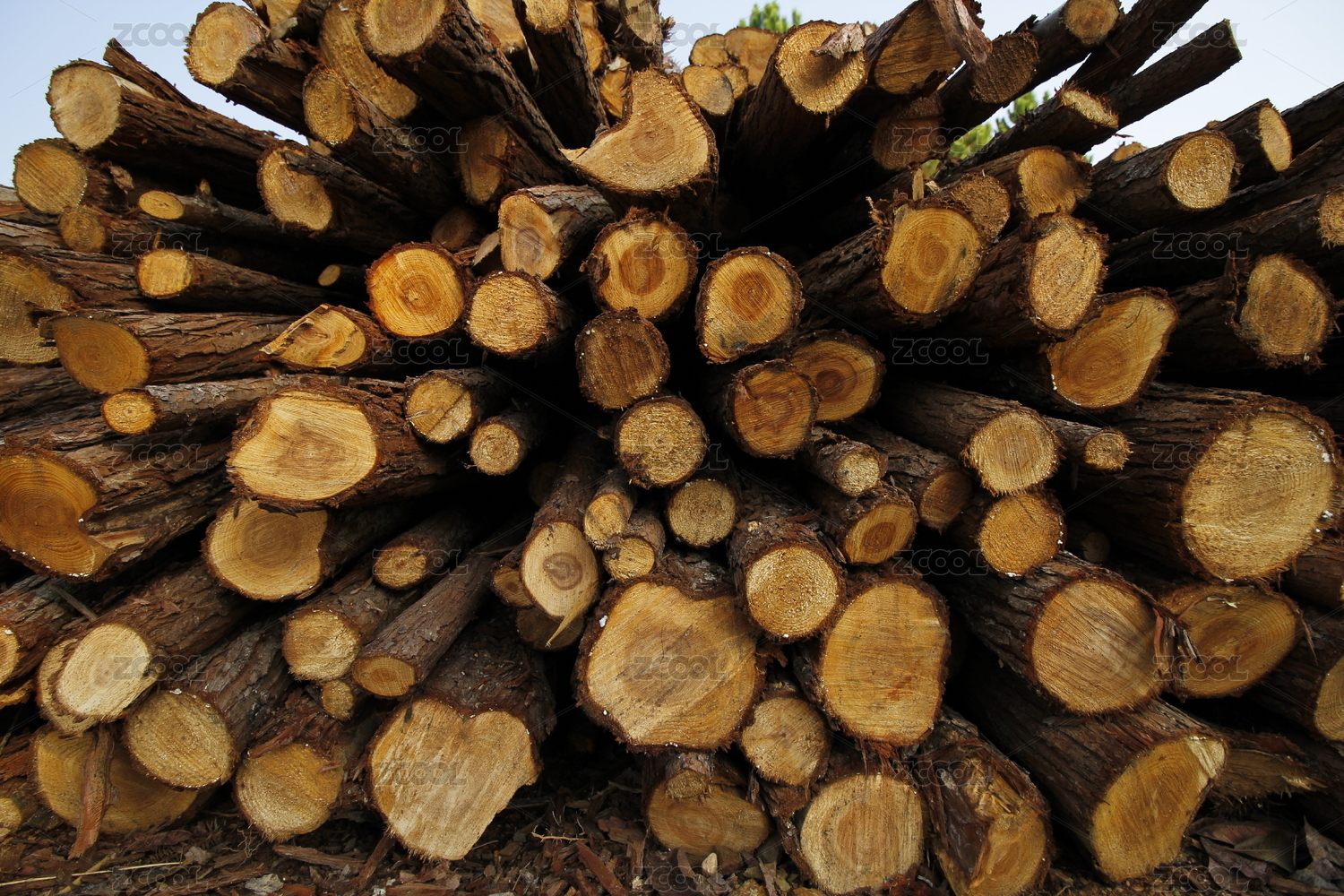 大量堆积的圆木横截面