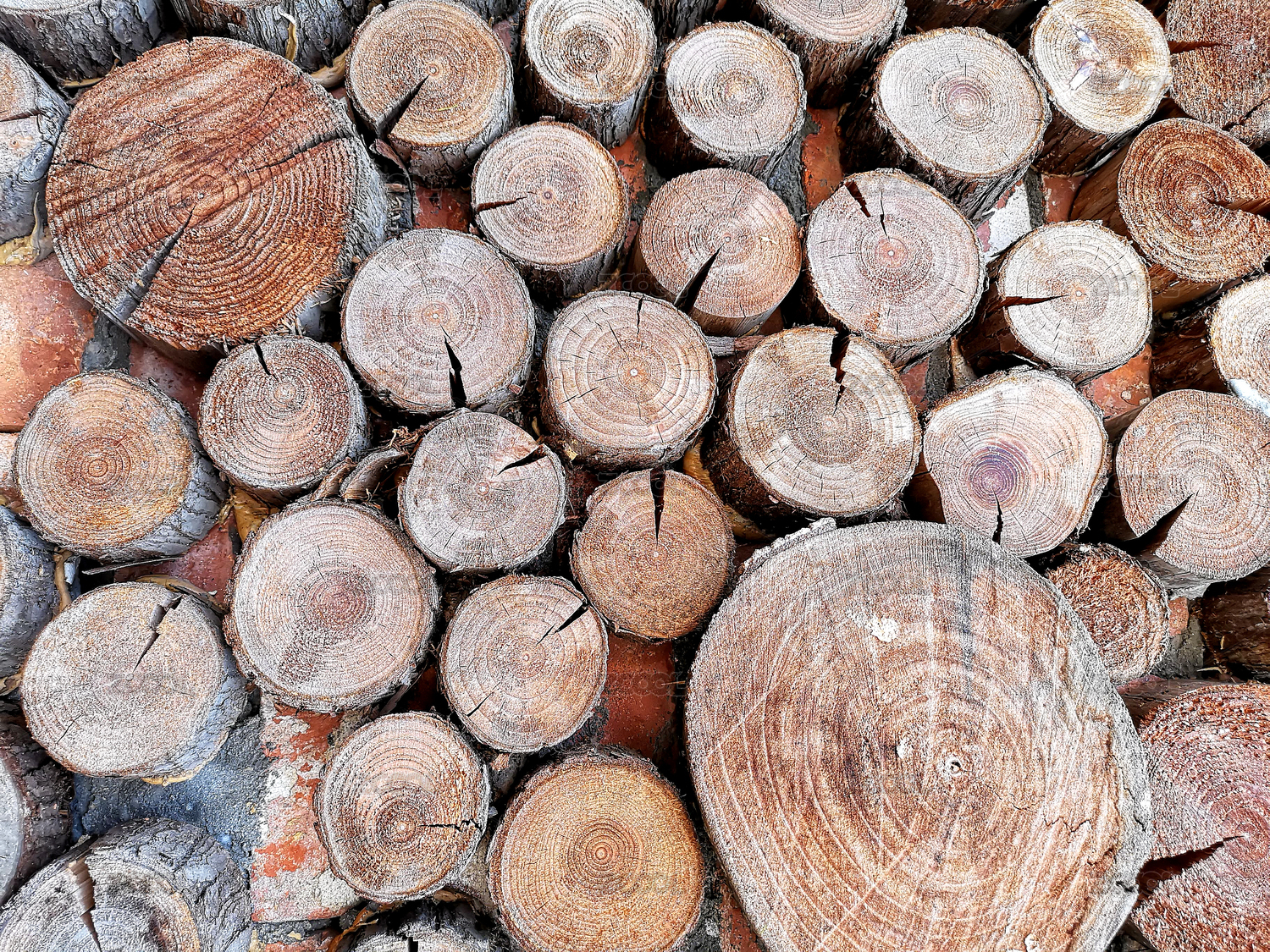 叠放木头的切面