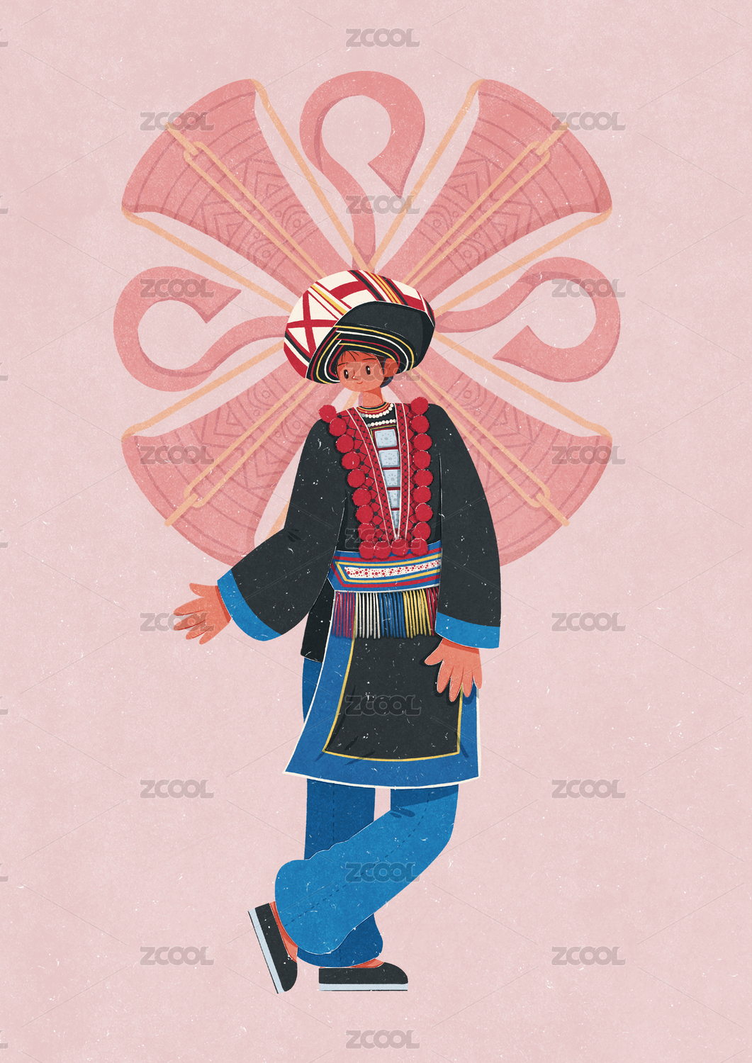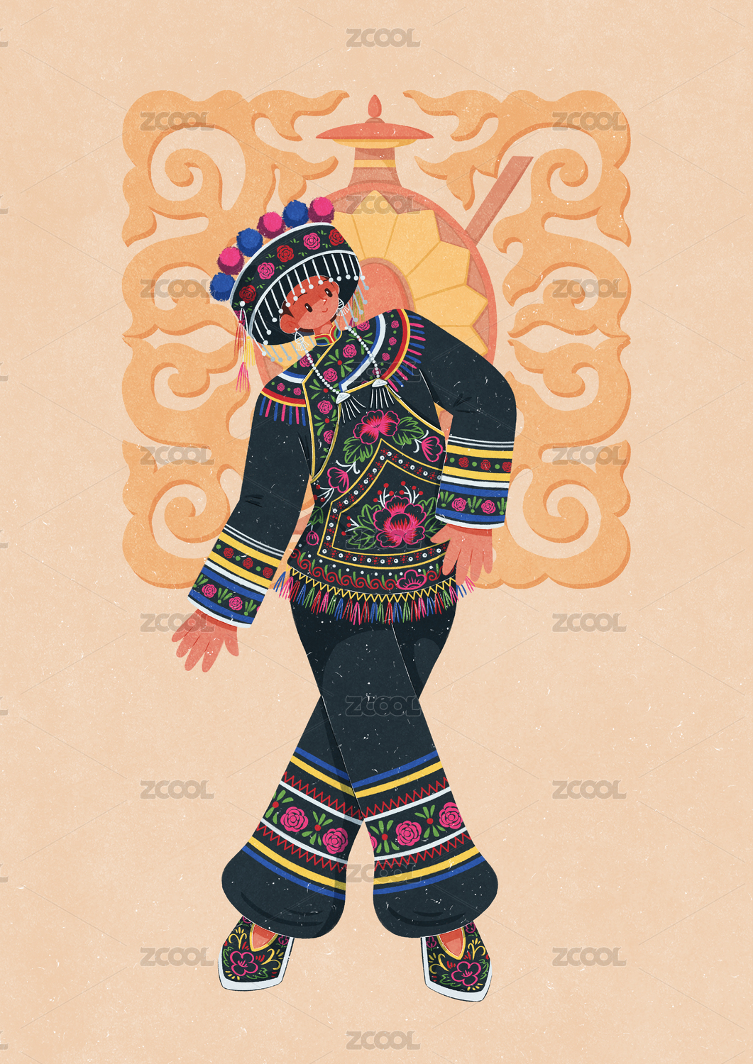 插画,卡通,扁平,少数民族,民族,传统文化,特色,苗族,衣服,服饰