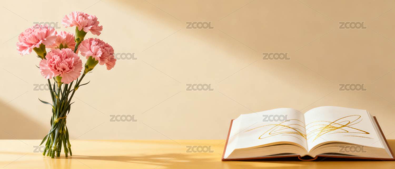 粉红色的鲜花和牛皮纸笔记本以及铅笔