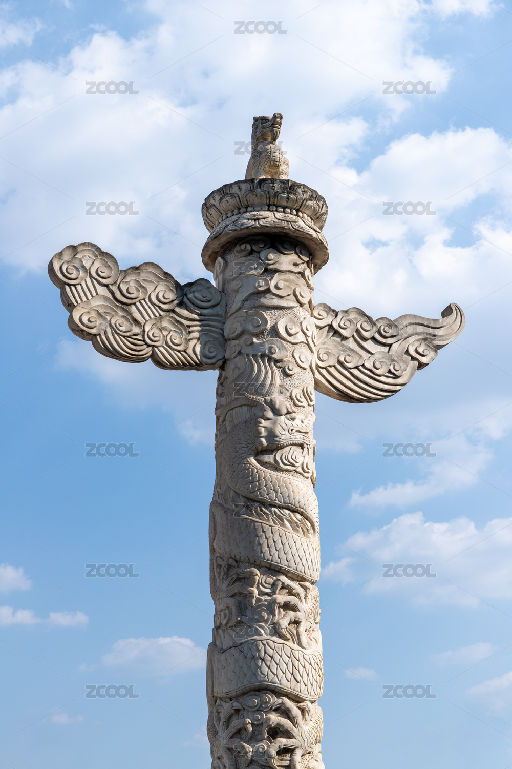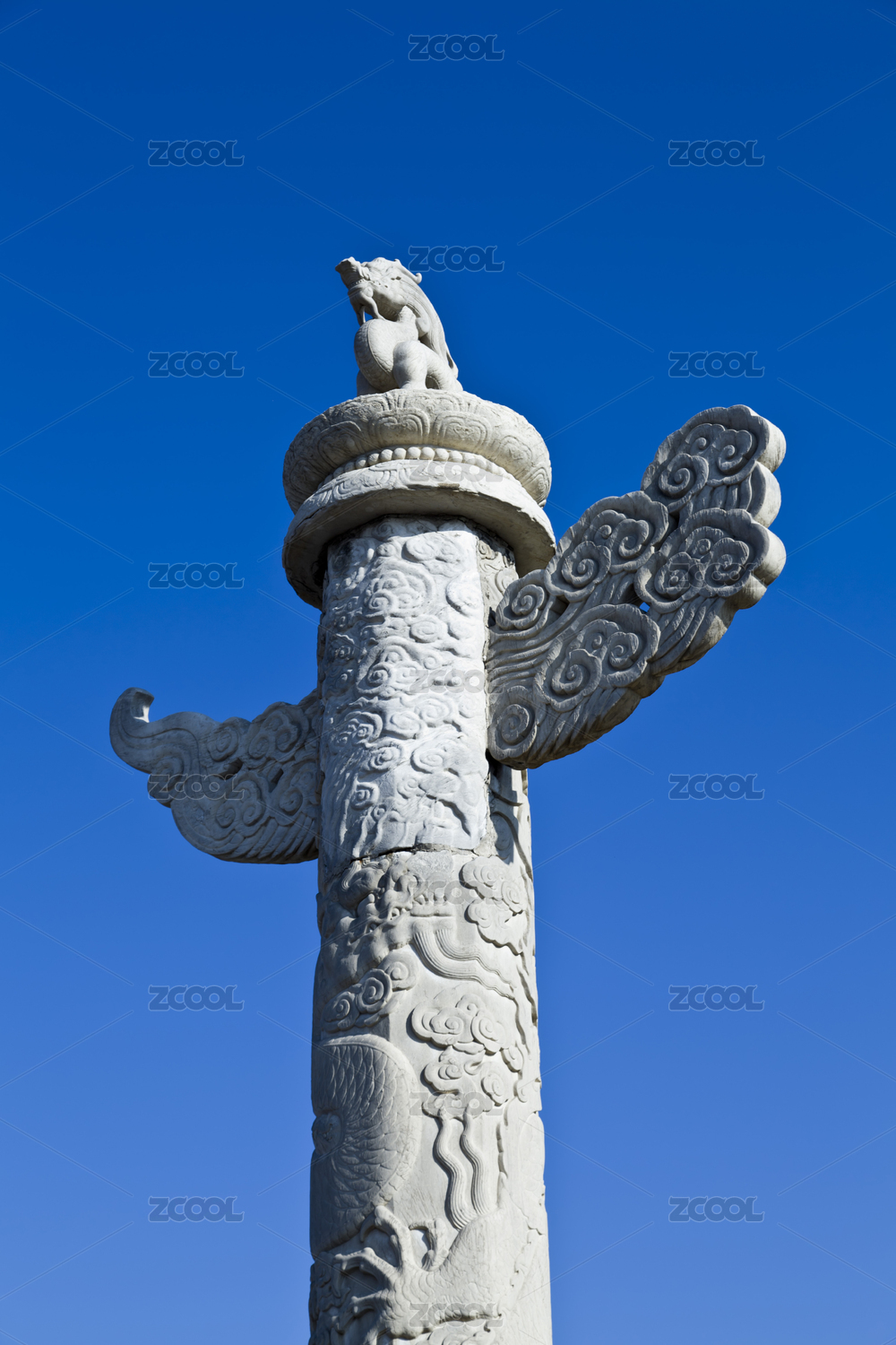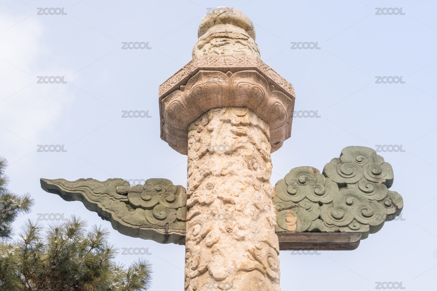雪后中国辽宁沈阳清昭陵的古代建筑华表