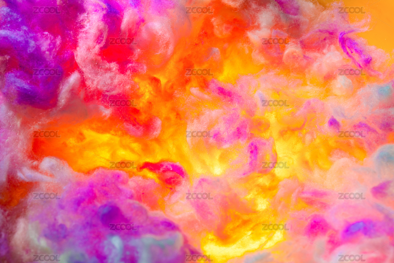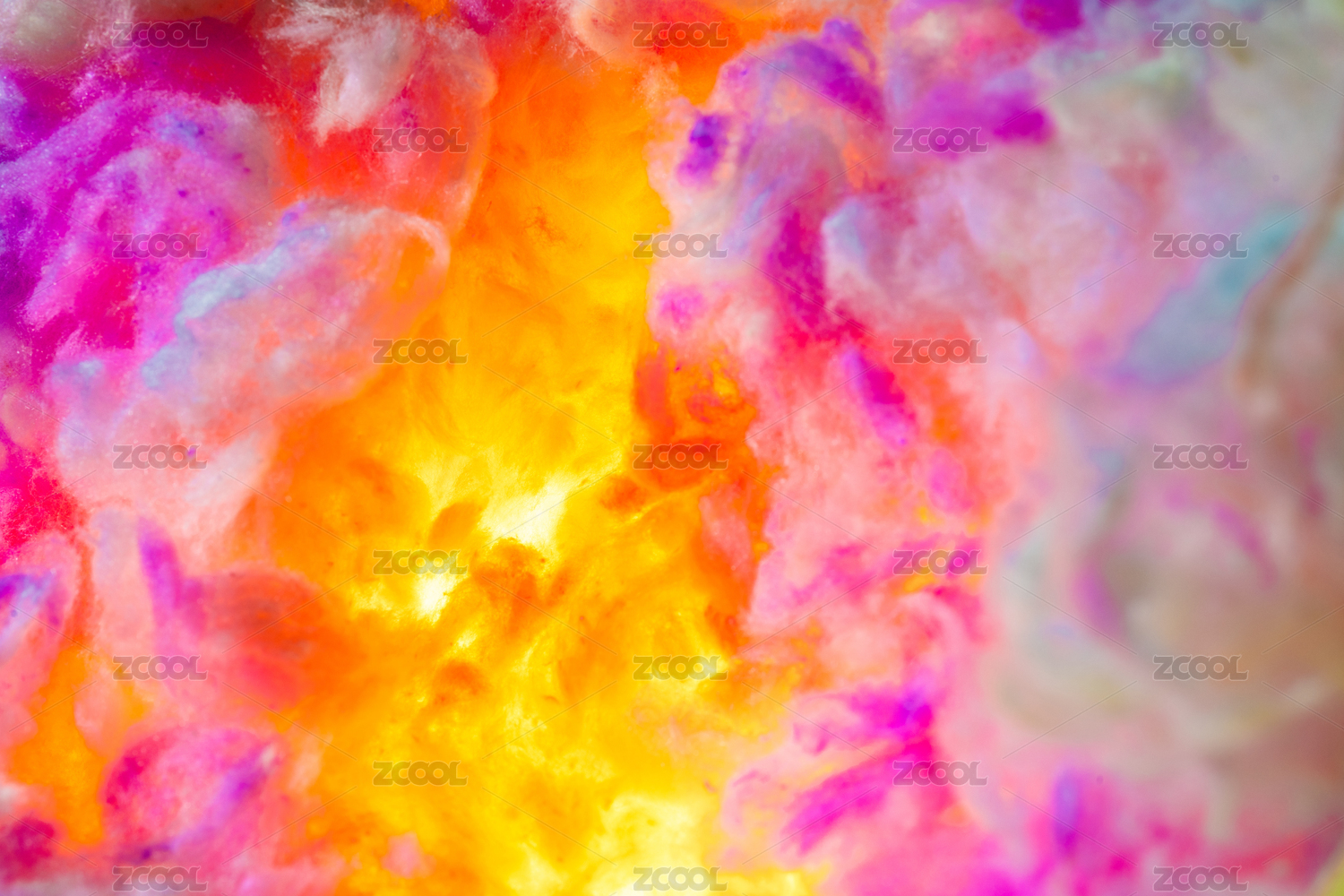 暖色灯光逆光照射彩色的棉花团