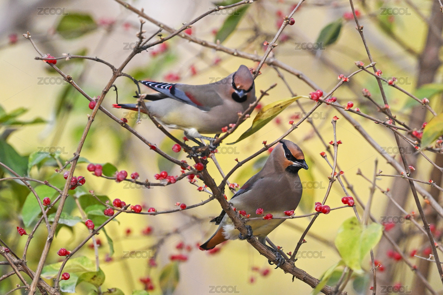 成群活动,以果实、种子、嫩芽为食的太平鸟