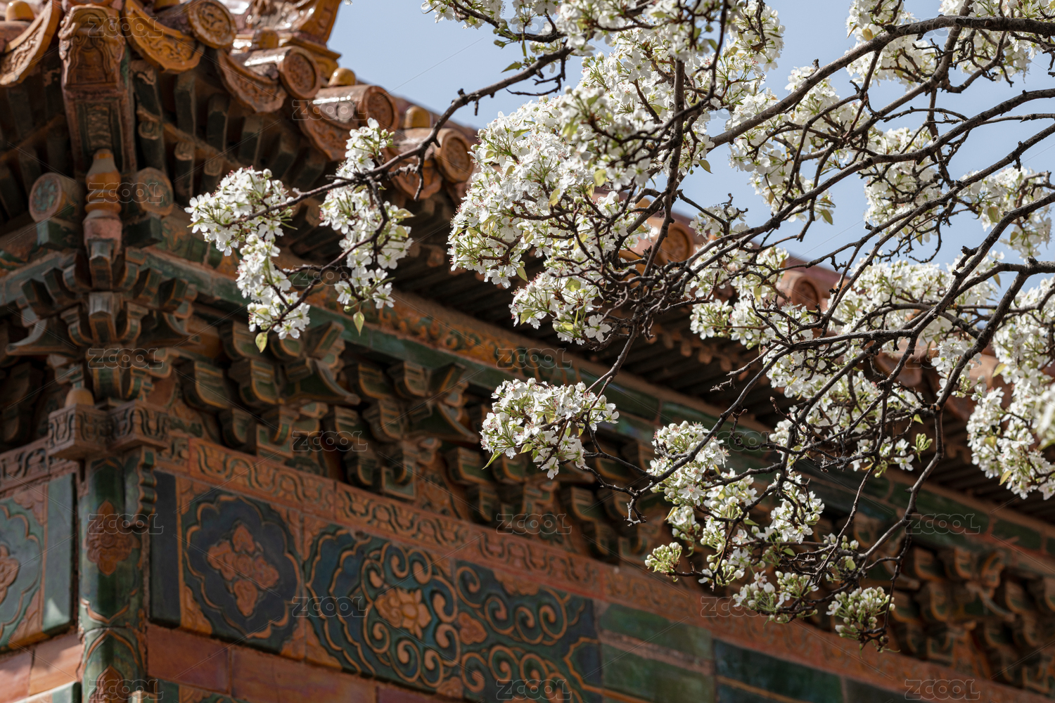 春天北京故宫博物院承乾宫里盛开的白色梨花