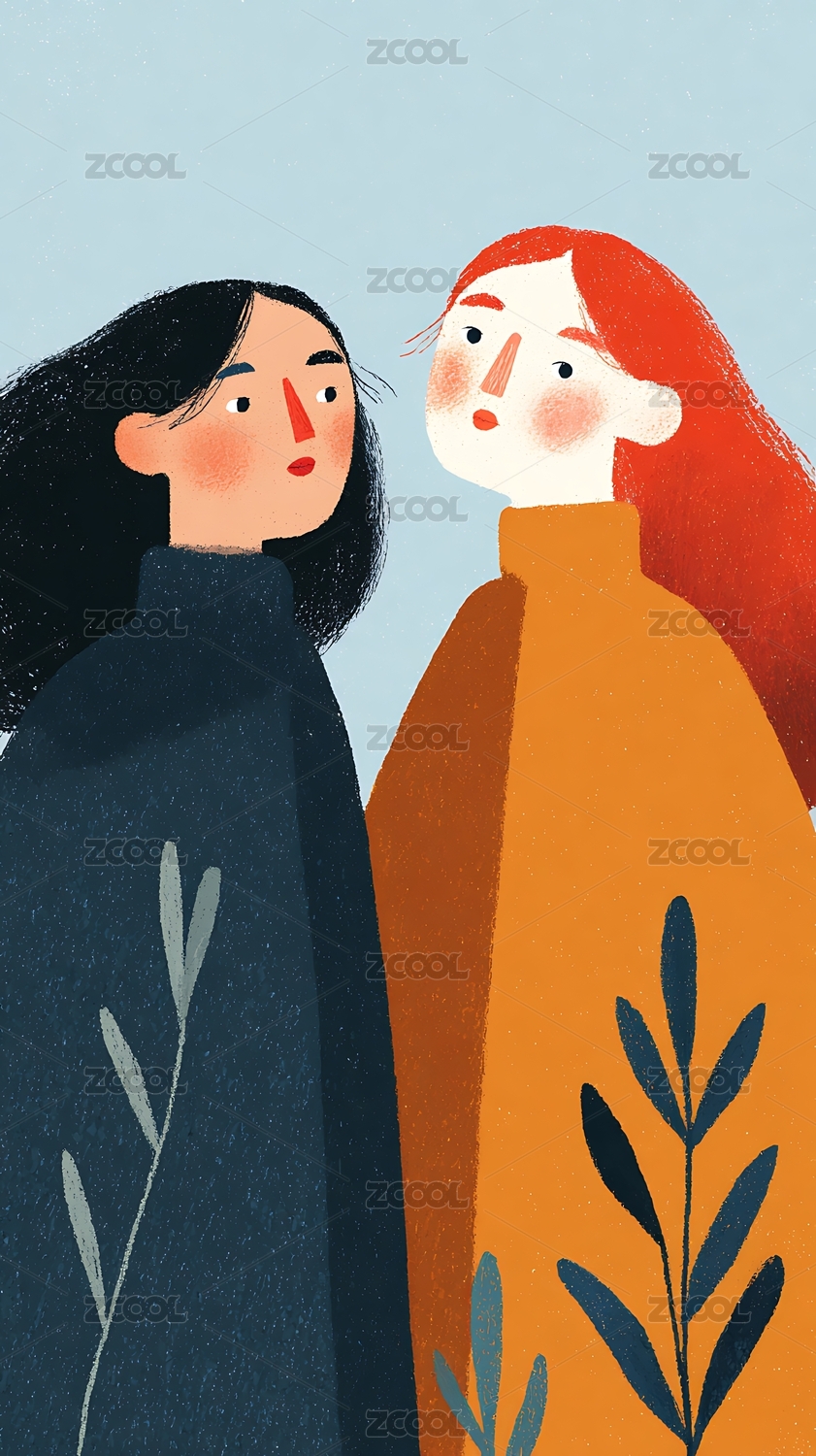 拥抱安慰低落的朋友闺蜜友情扁平风插画