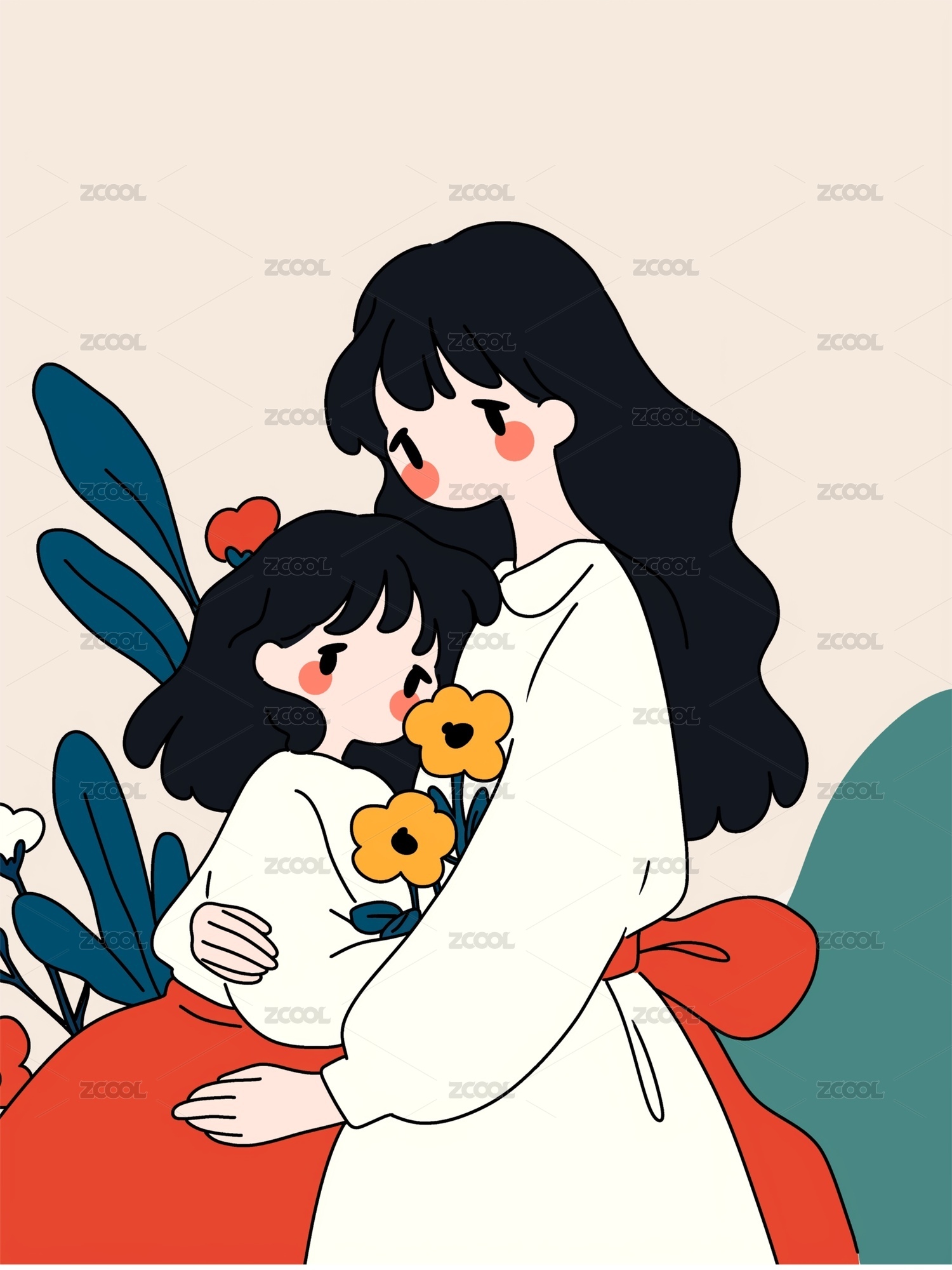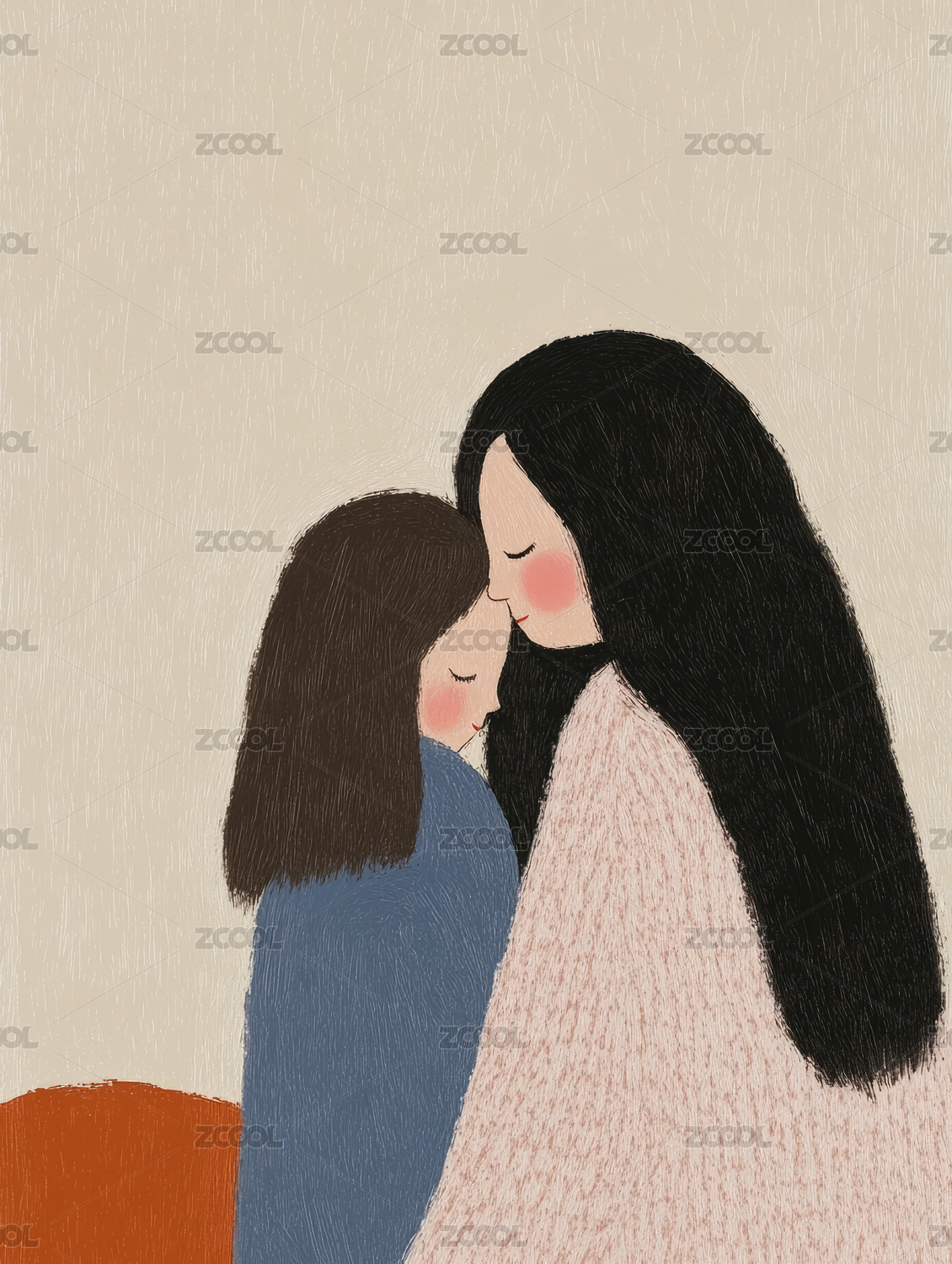 拥抱,亲人,爱护,陪伴,监护人,母爱,女性,长发,画画,毛衣
