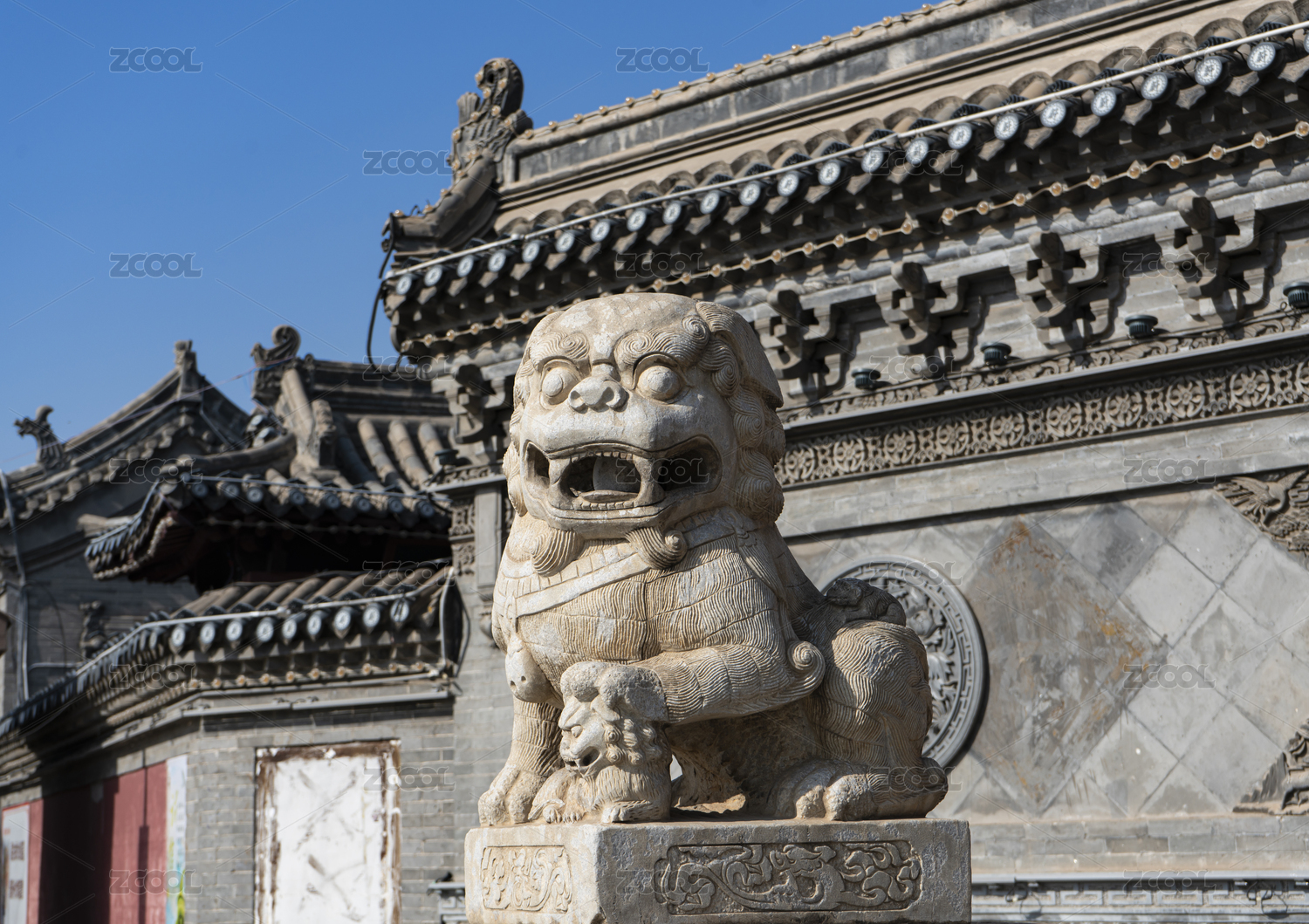 张家口市蔚县古建筑蔚州衙 衙门前的石狮子