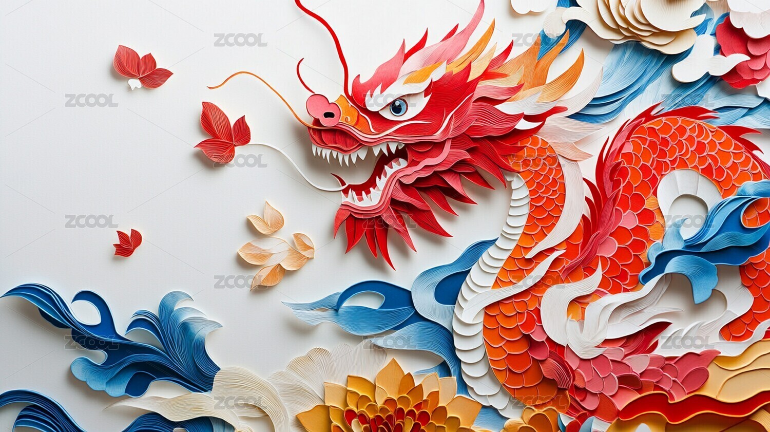 中国龙新中式立体剪纸插画