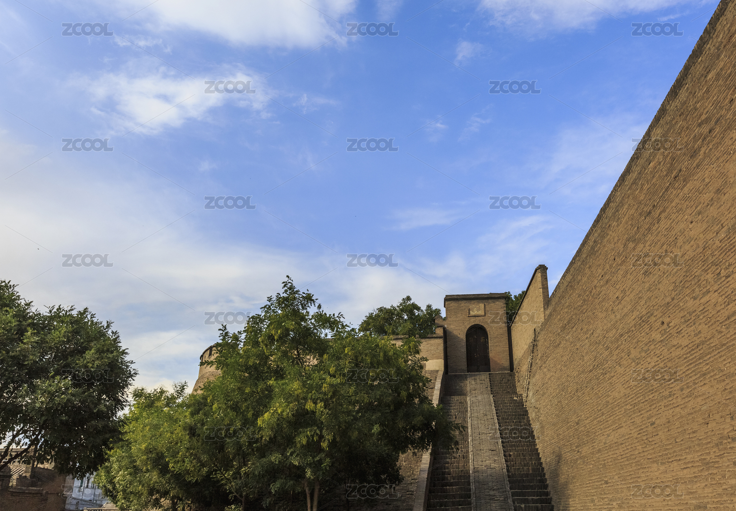 宁夏镇北堡西部影视城蓝天白云黄土风光