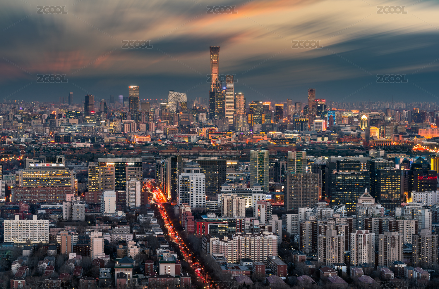 中国北京奥林匹克塔俯瞰国贸城市建筑风光
