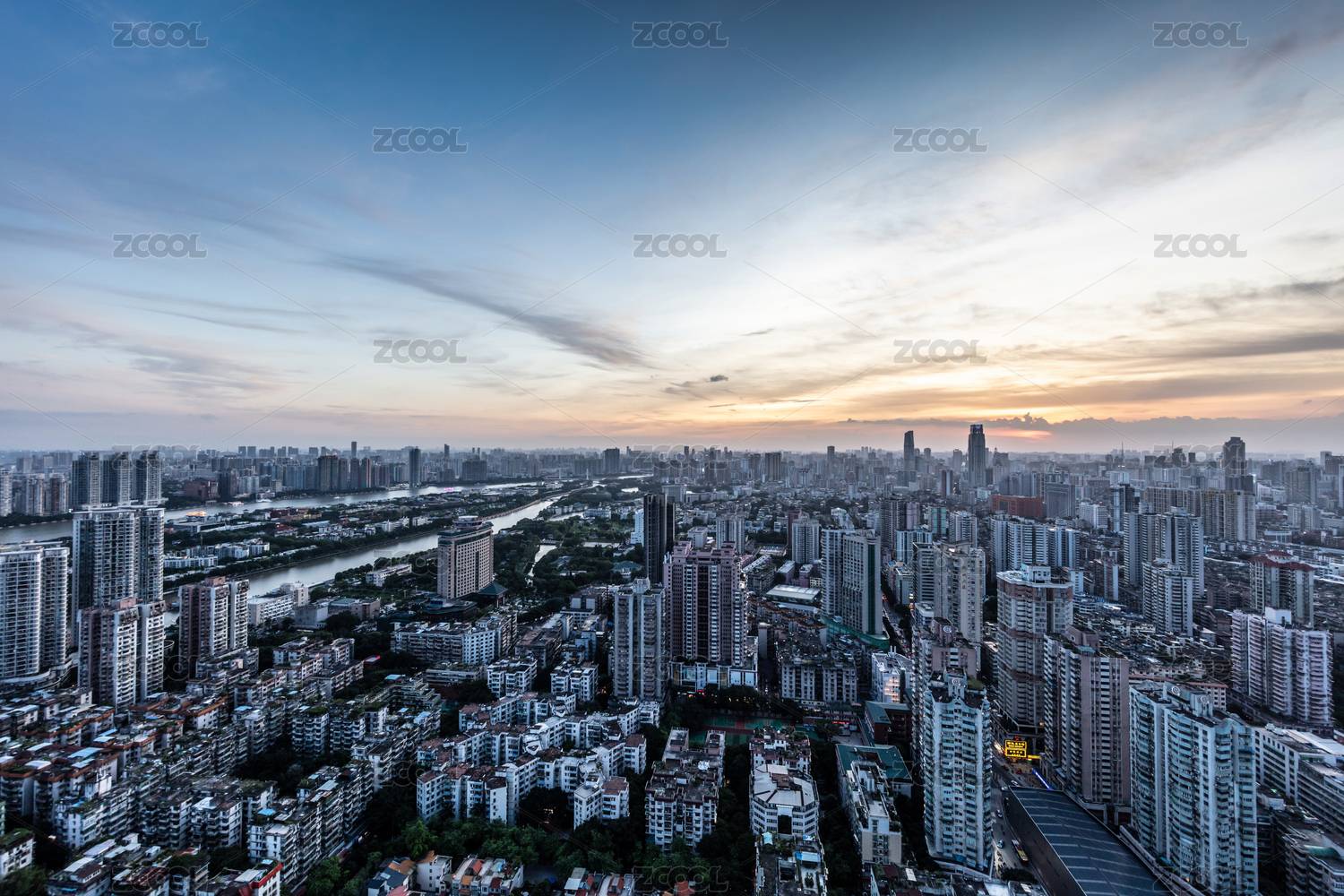 广州城市晚霞黄昏风光夜景