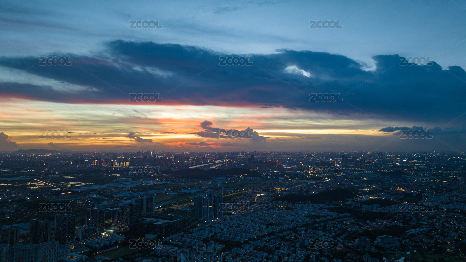 广州,城市,番禺区,南村万博,灯光,夜景,航拍,晚霞,日落,夕阳