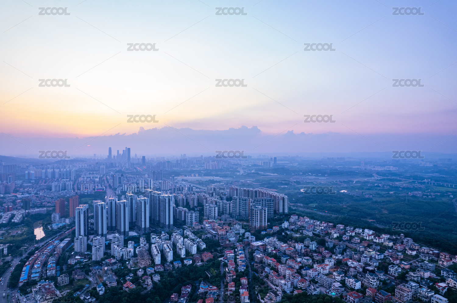 中国广东佛山顺德城市风光 夏季美丽的晚霞