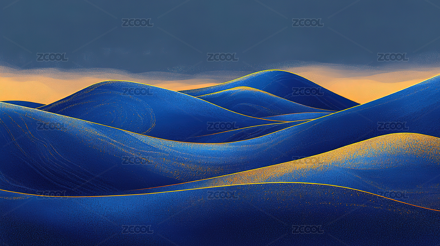 美丽的抽象背景,有黄色和蓝色色调的沙丘。
