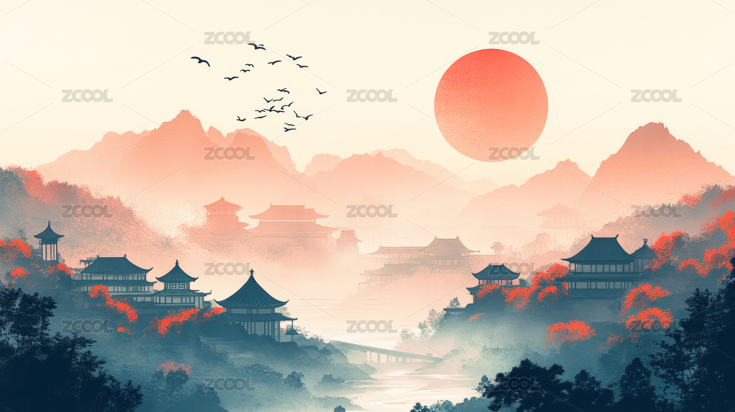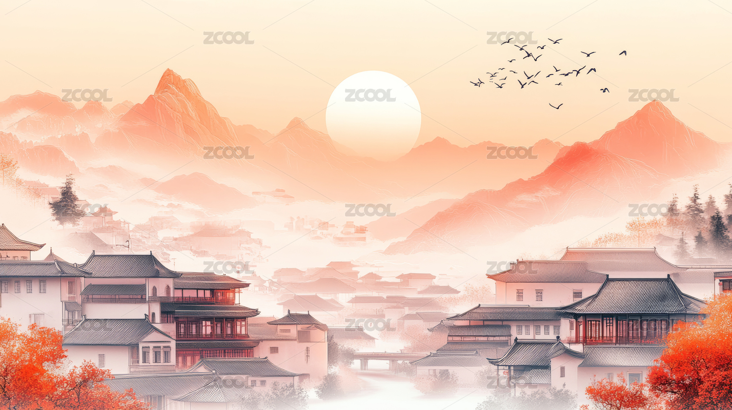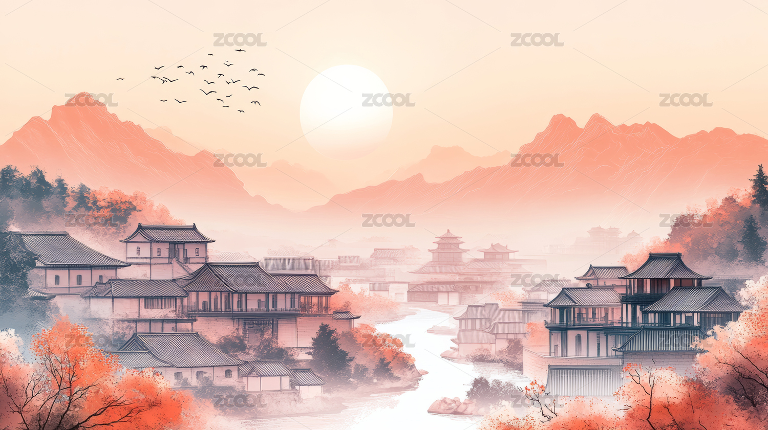 中国文化,建筑,古镇,山,天空,水,户外,风景,旅游,旅行