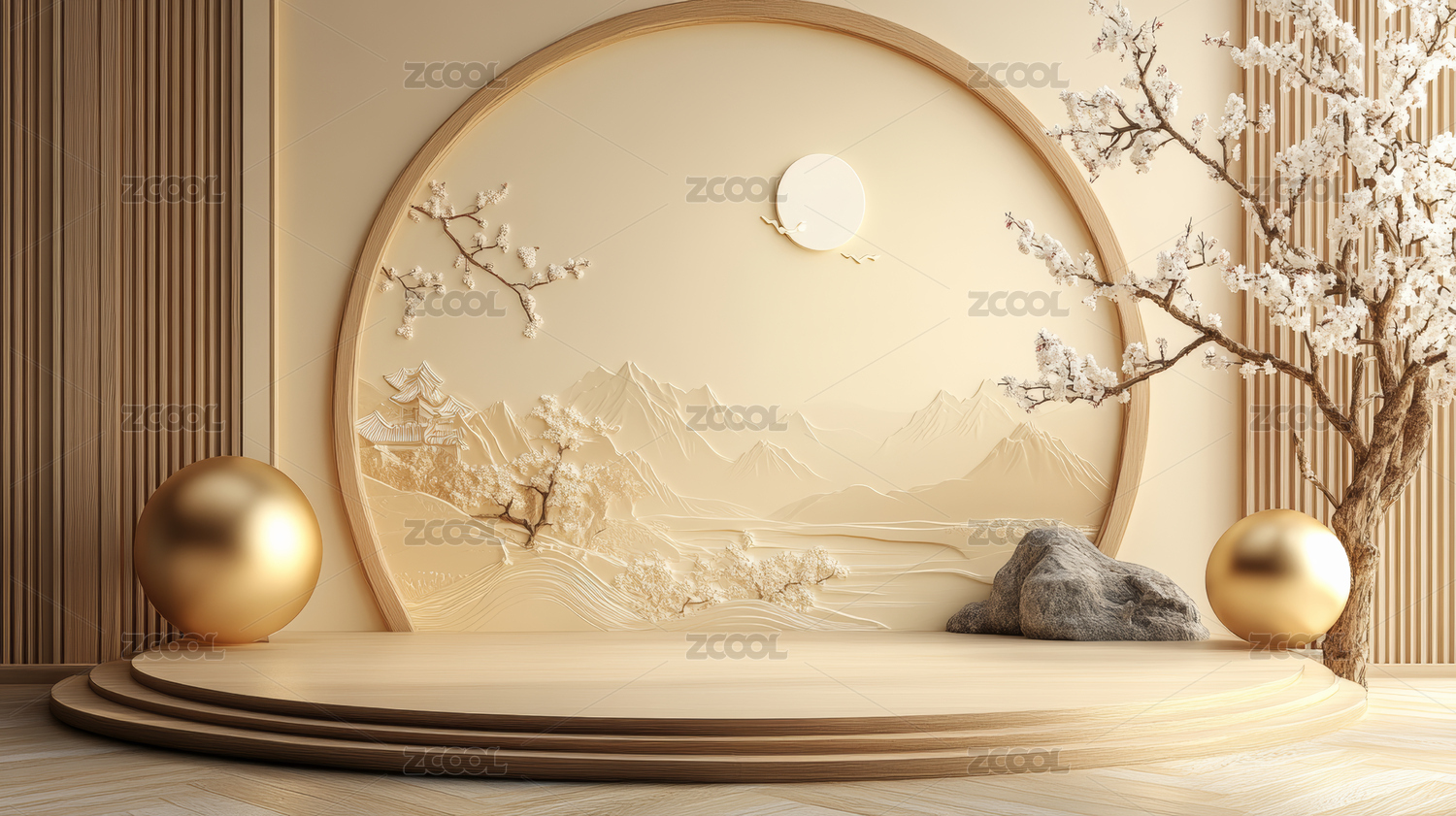 3D渲染国风电商产品展台背景