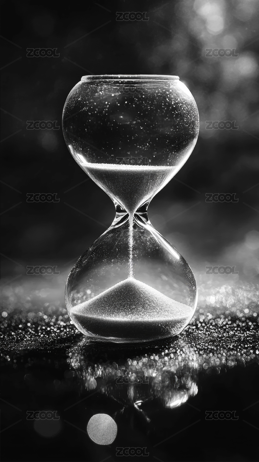极简3D沙漏与玻璃花装饰的梦幻插画