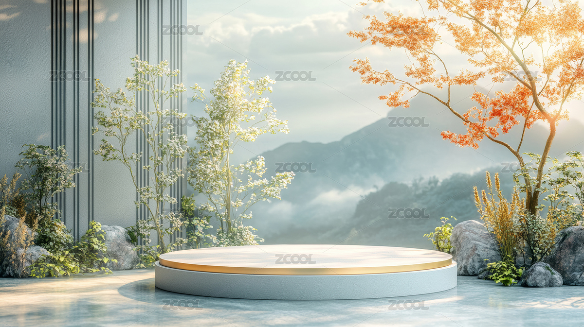 自然,风景,山,室内,平台,展台,展示台,树,秋天,阳光