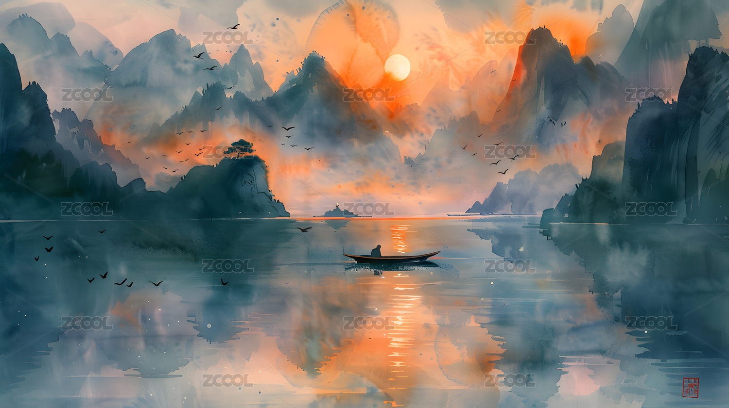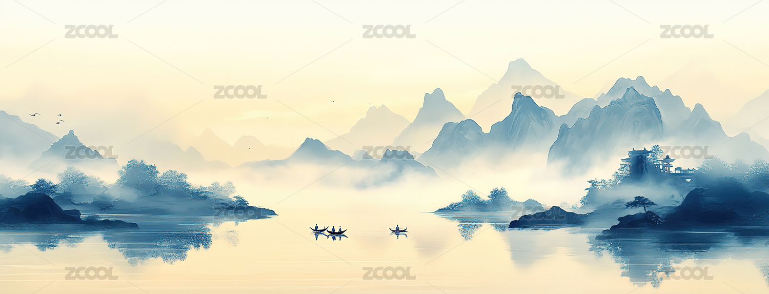 中国风山水风景水墨画风格