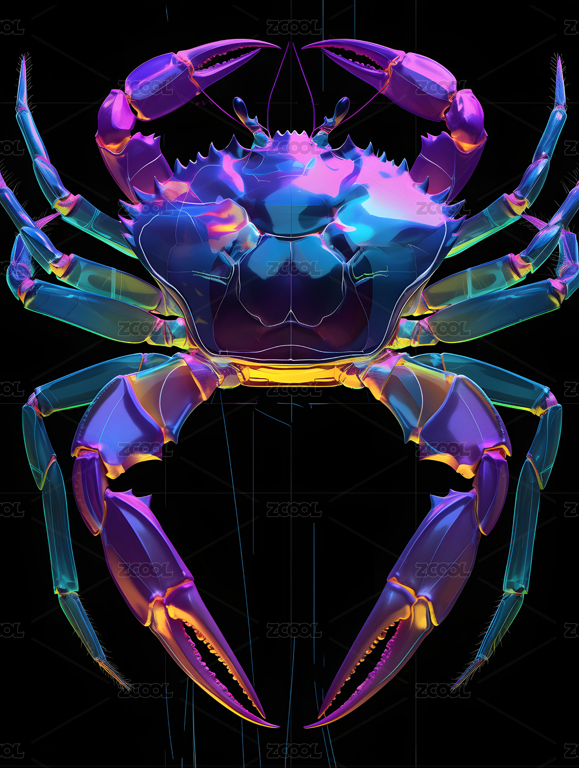 赛博朋克彩色螃蟹