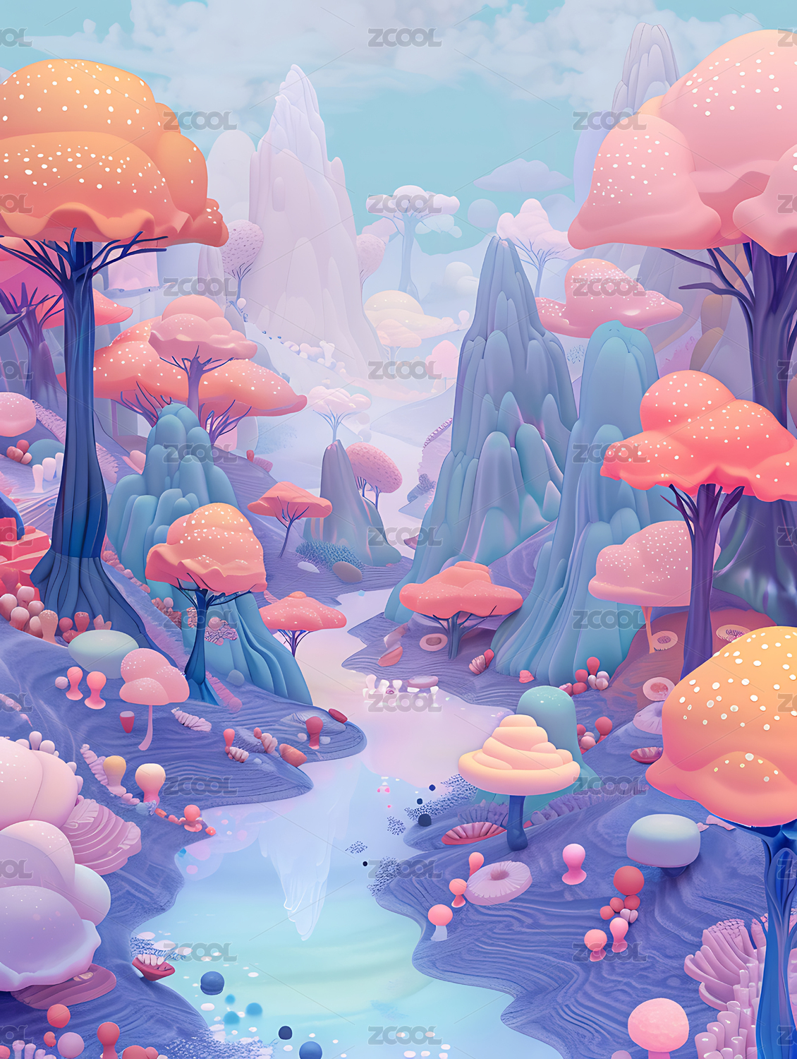 卡通3d山水背景